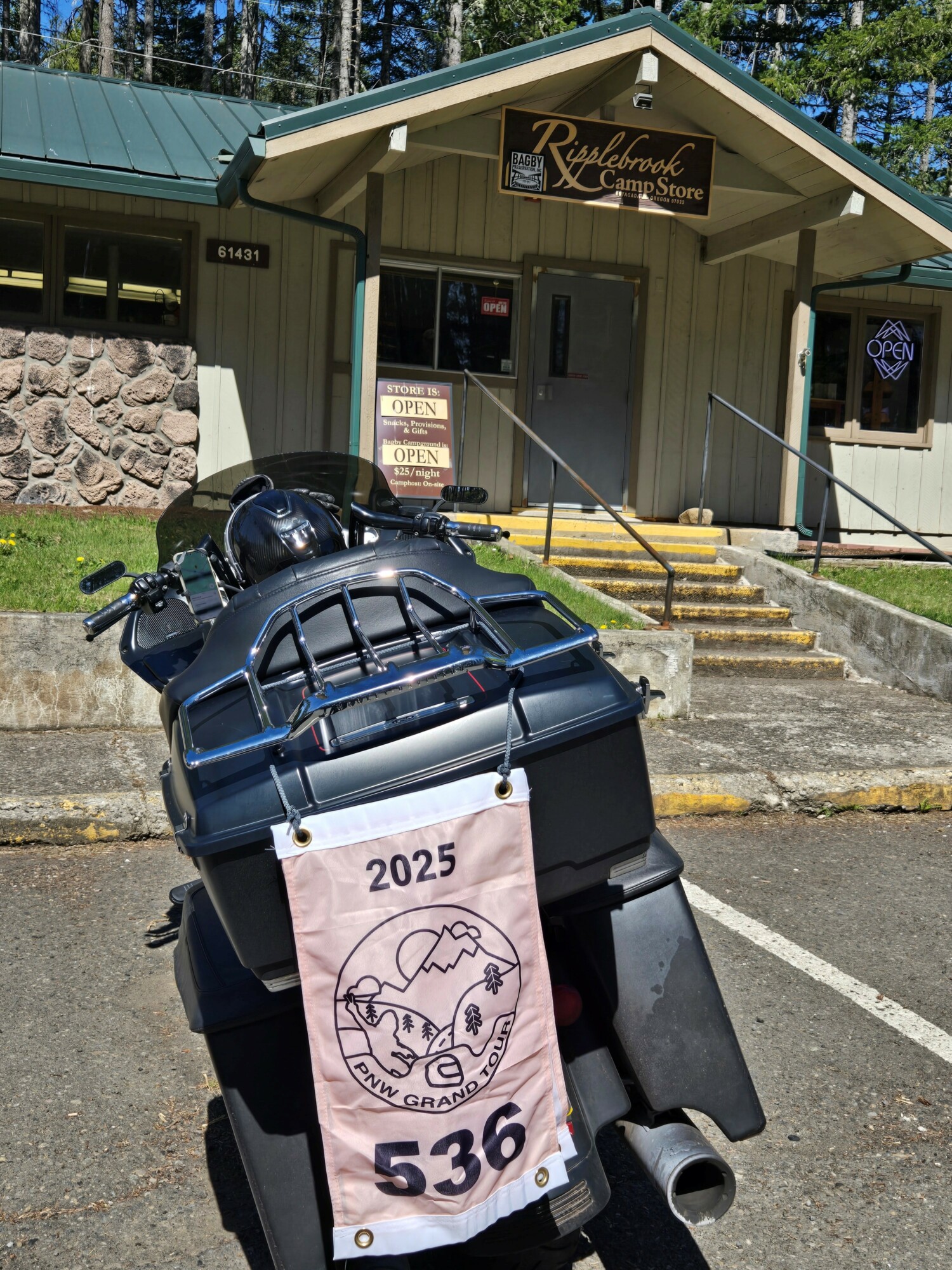 Take a picture of the Ripplebrook Store with your bike and rally flag in the picture.