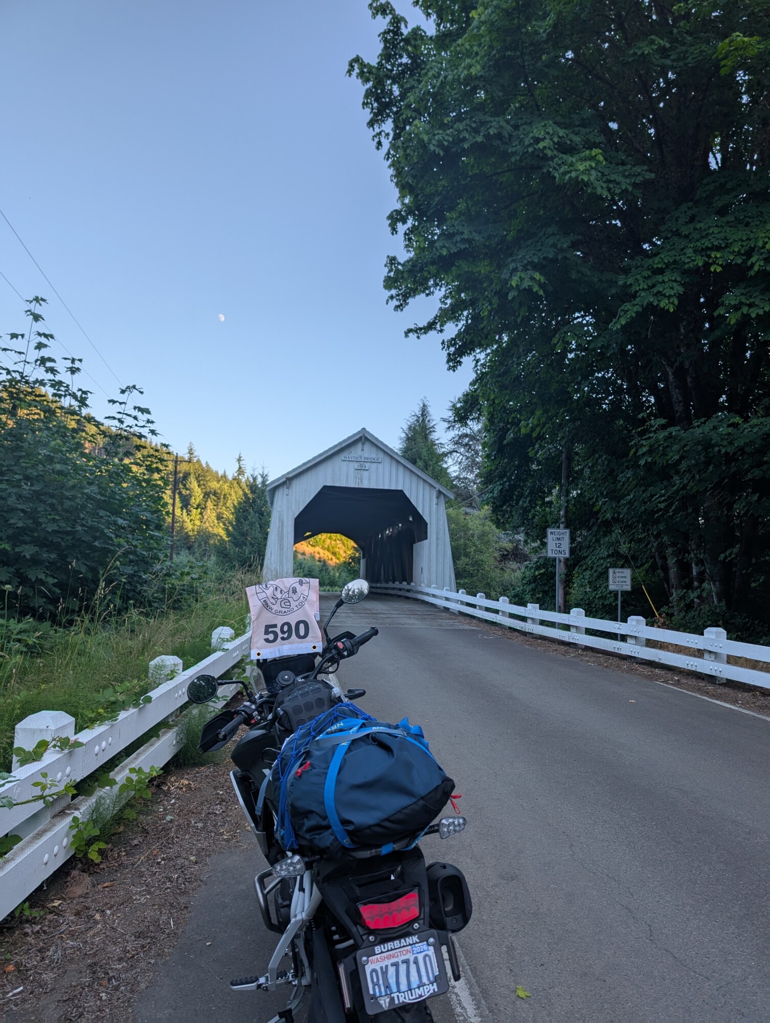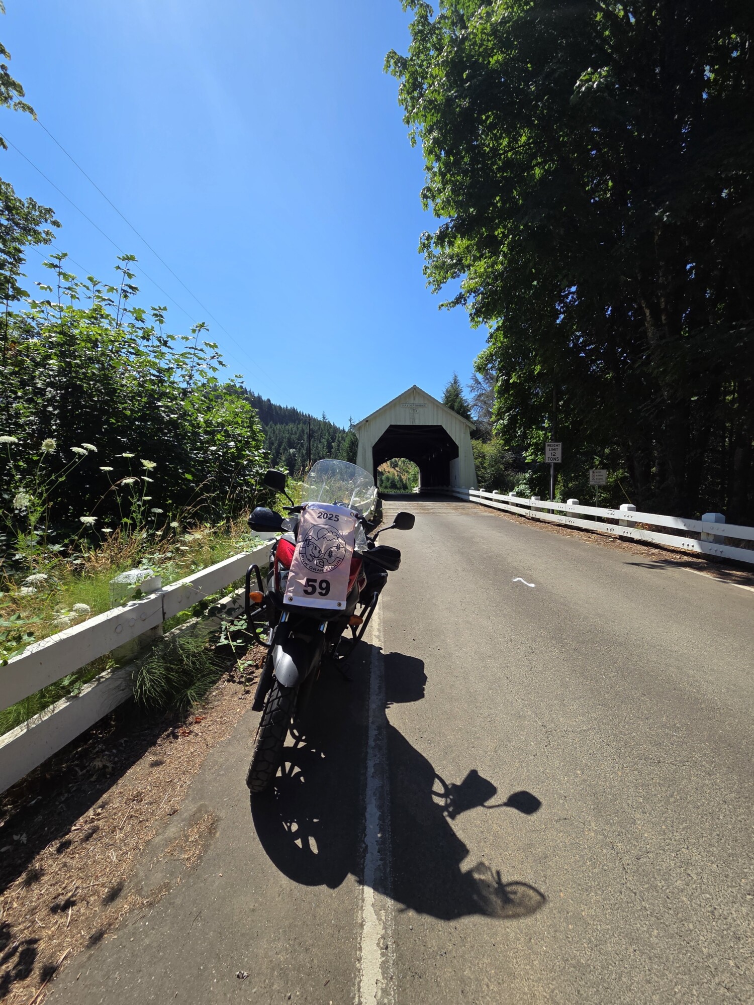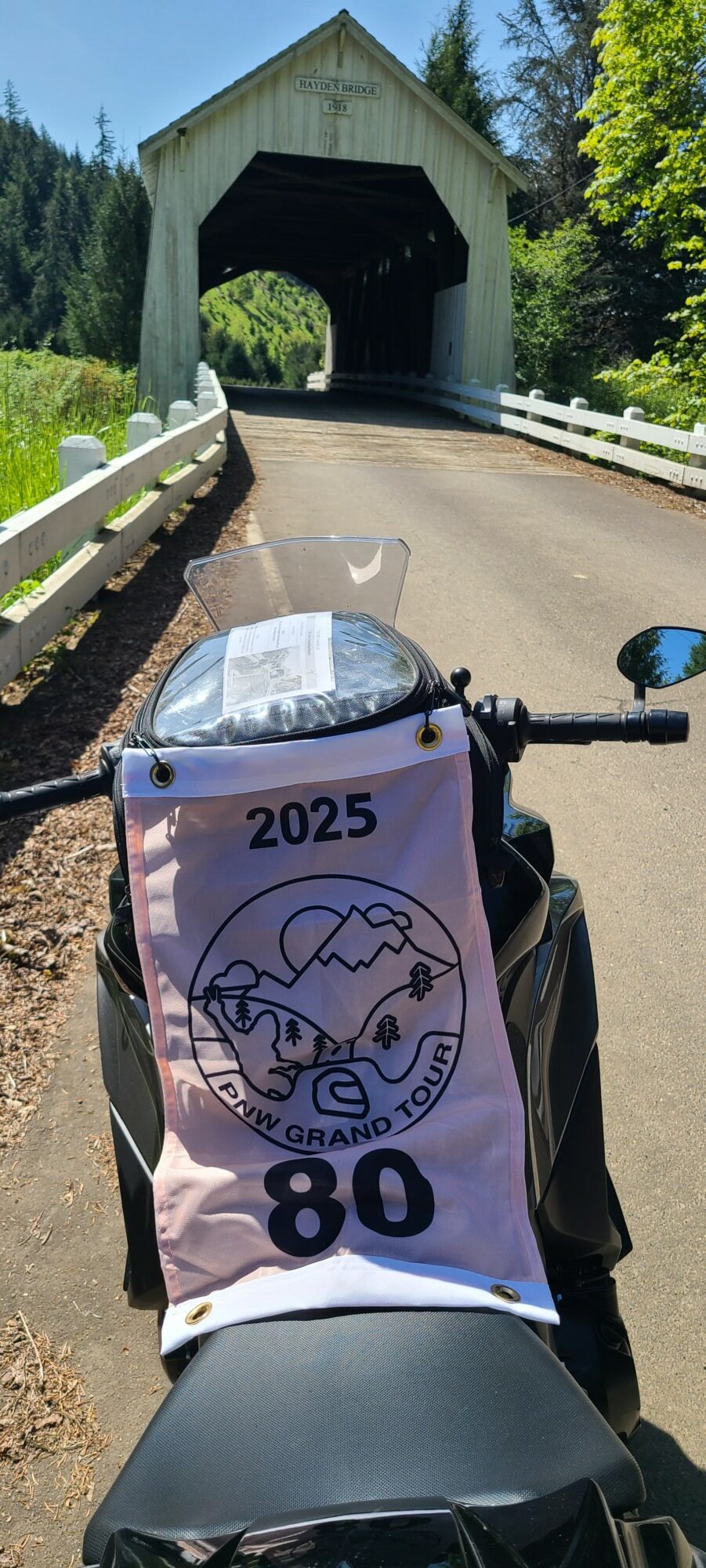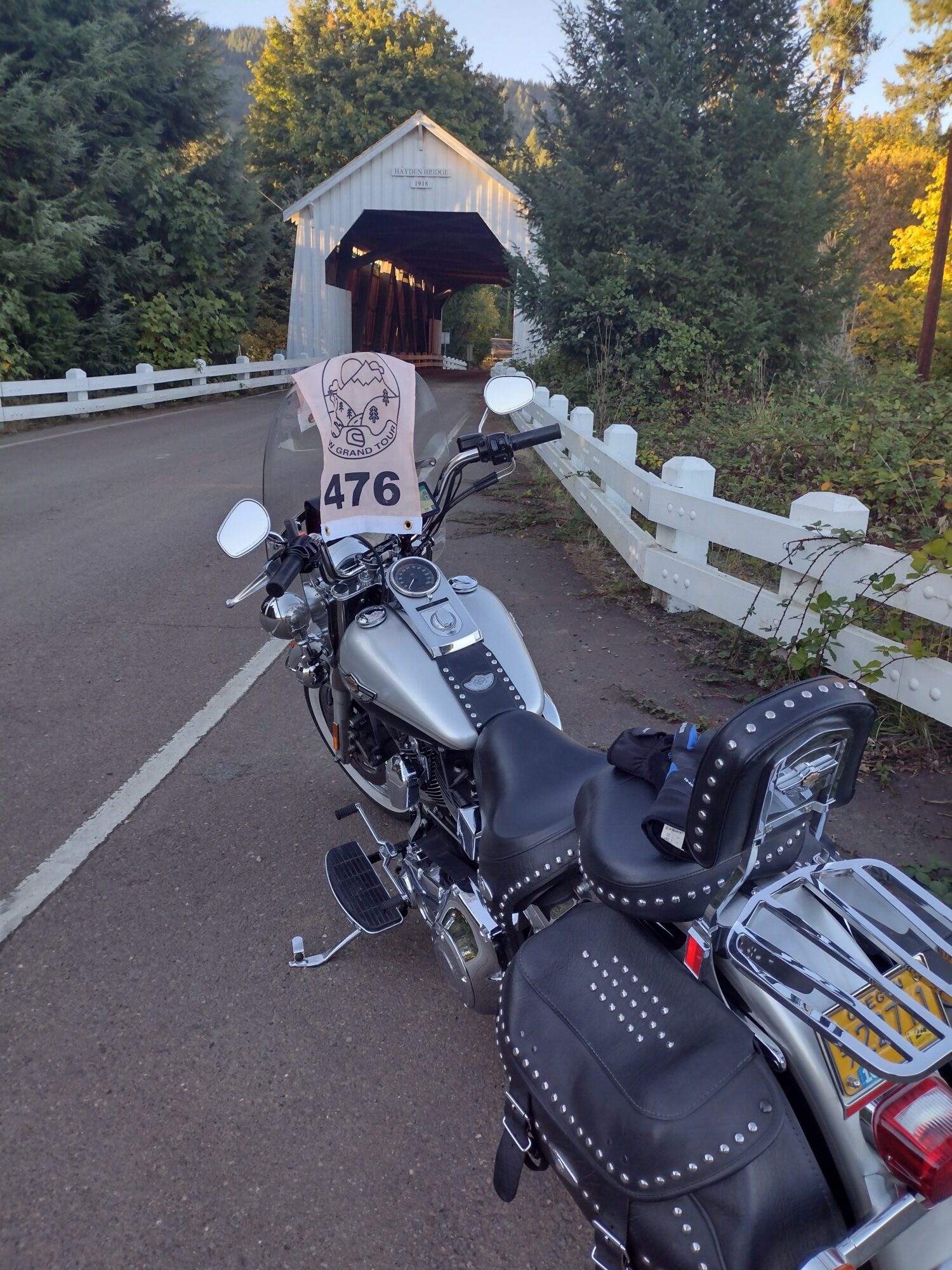 Take a picture of the Hayden Covered Bridge with your bike and flag in the picture.