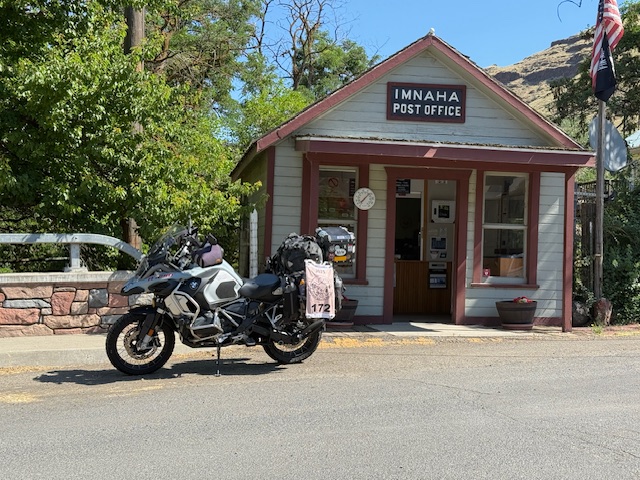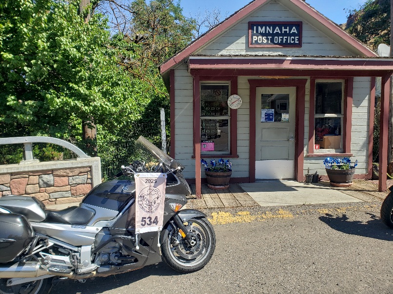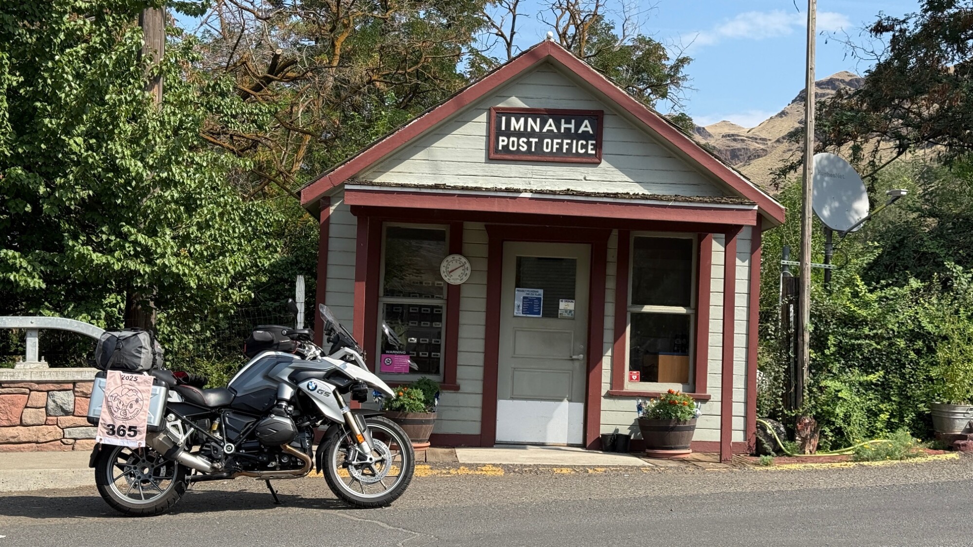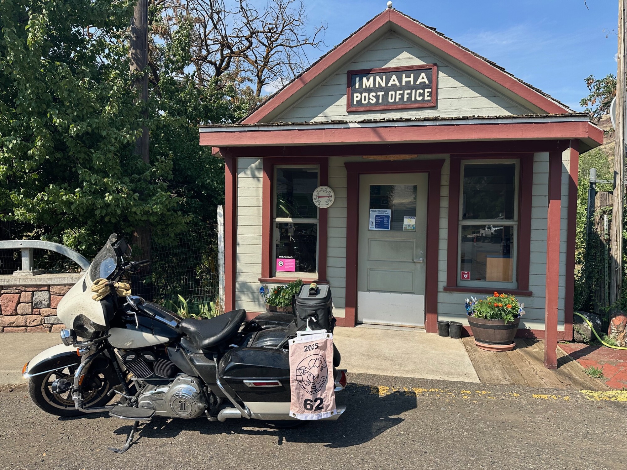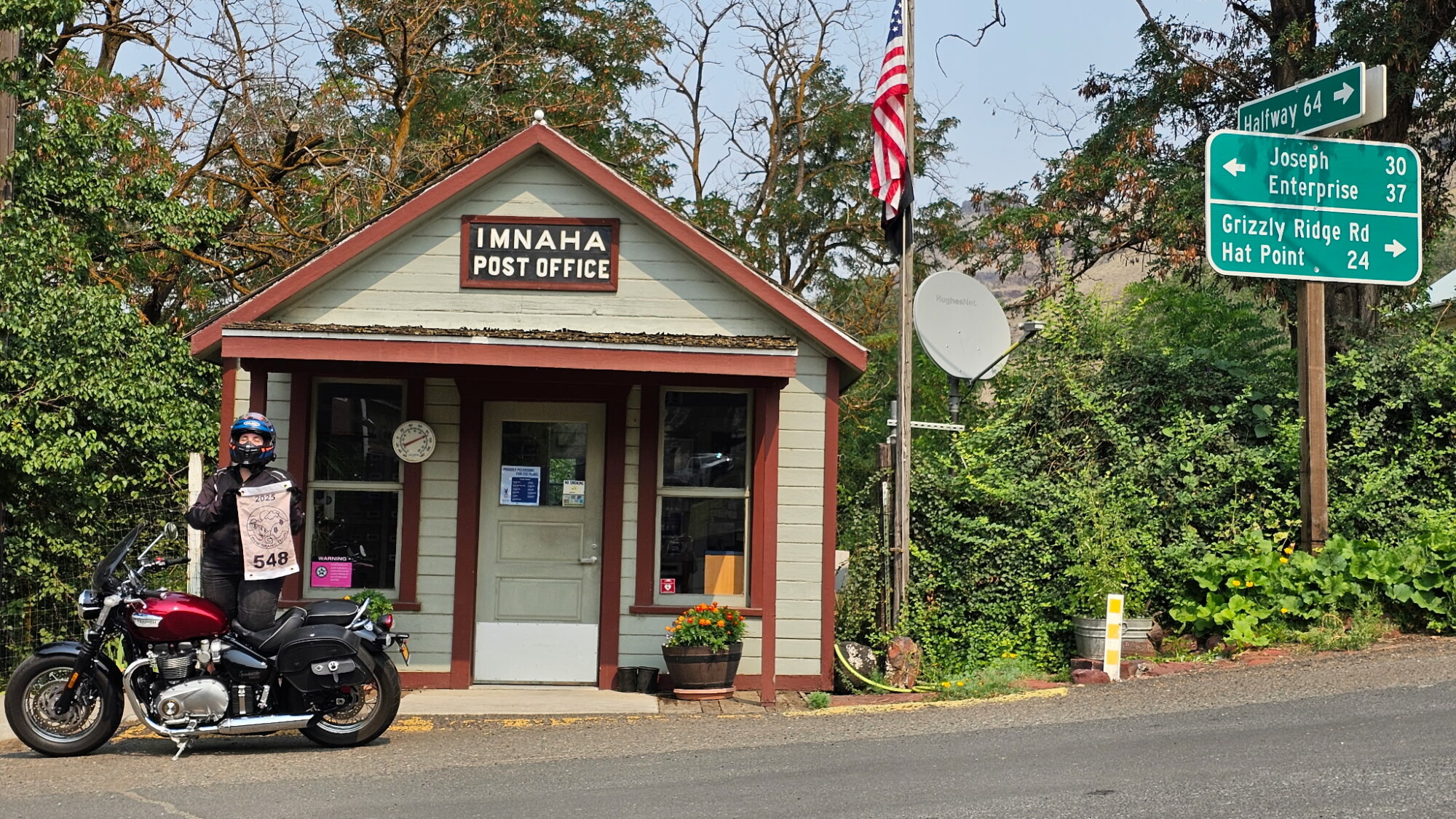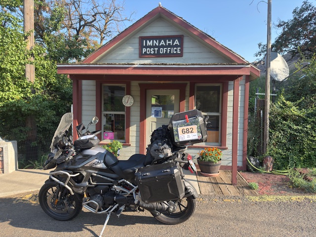 Take a picture of the Imnaha Post Office with your bike and flag in the picture.