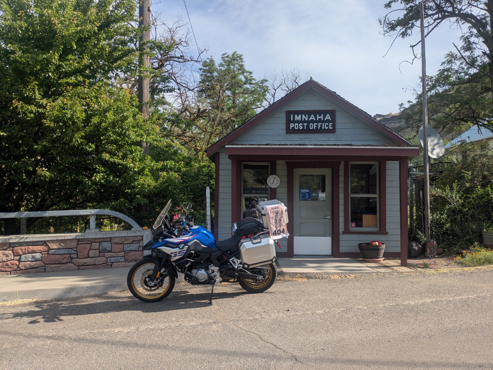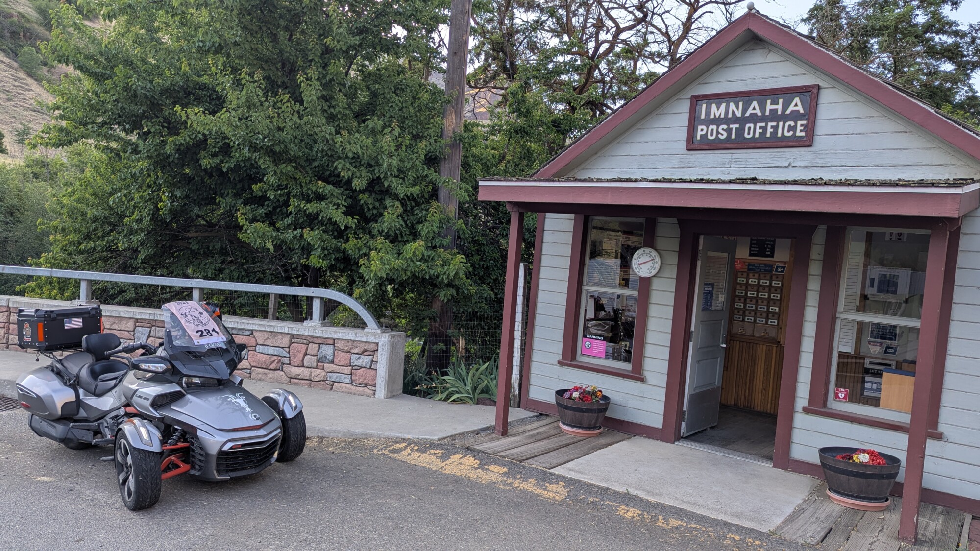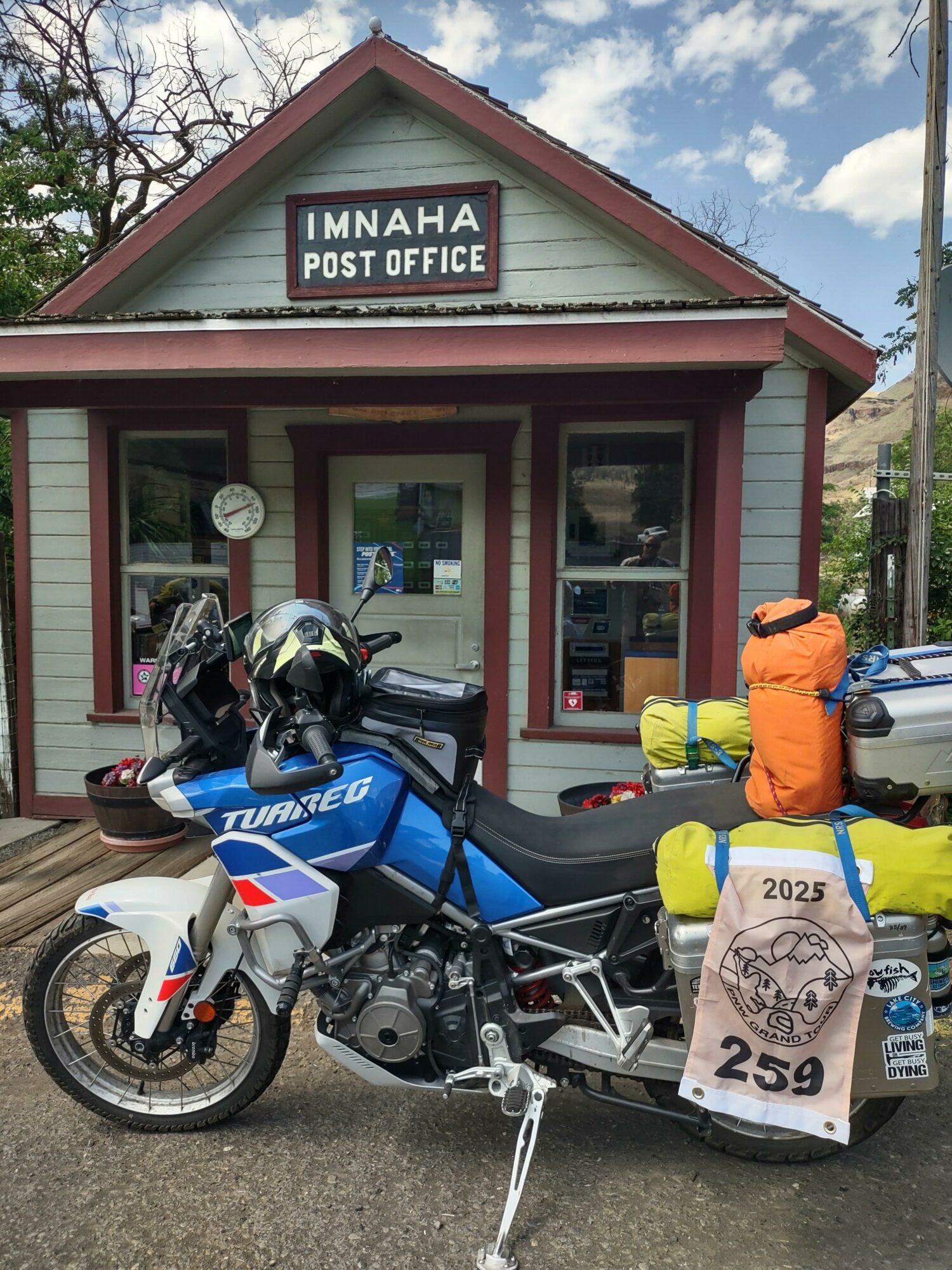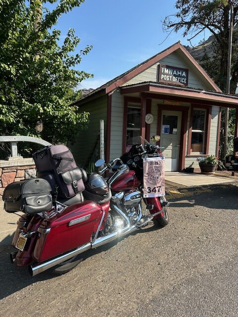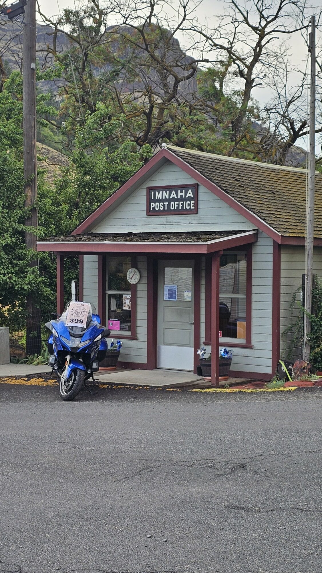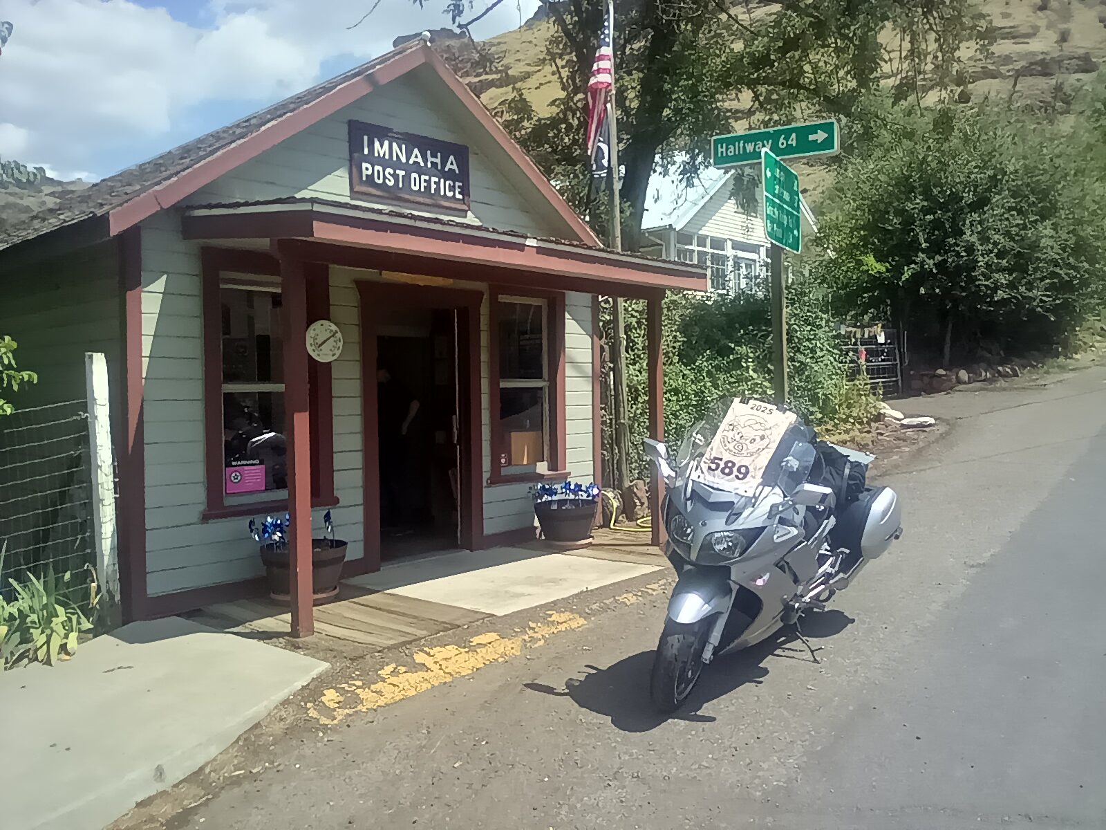 Take a picture of the Imnaha Post Office with your bike and flag in the picture.