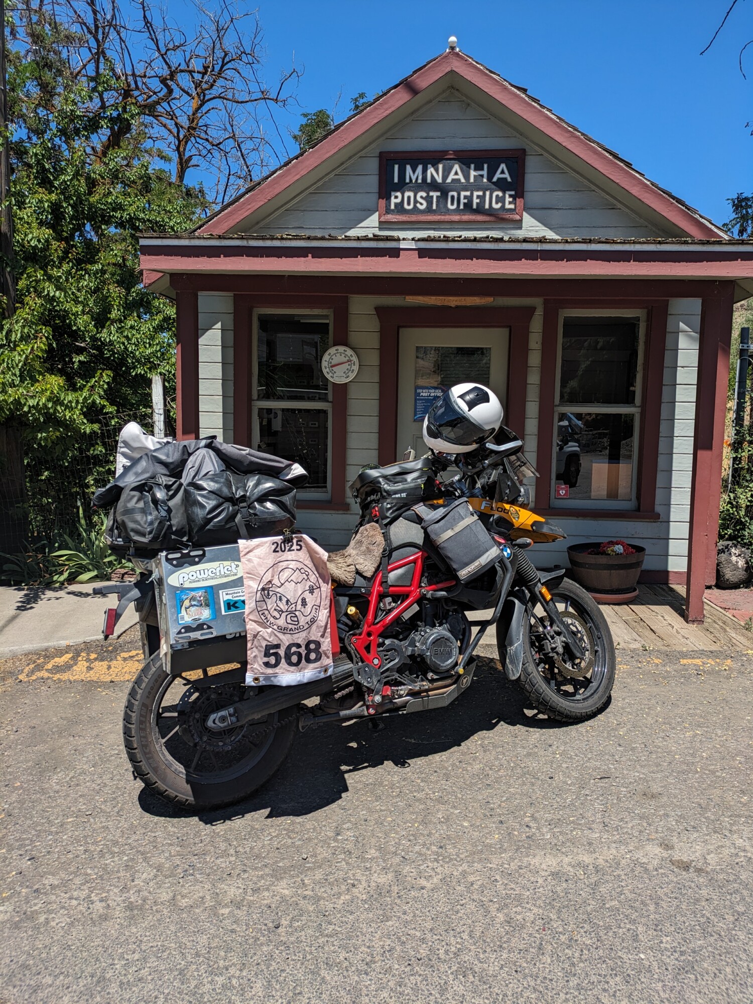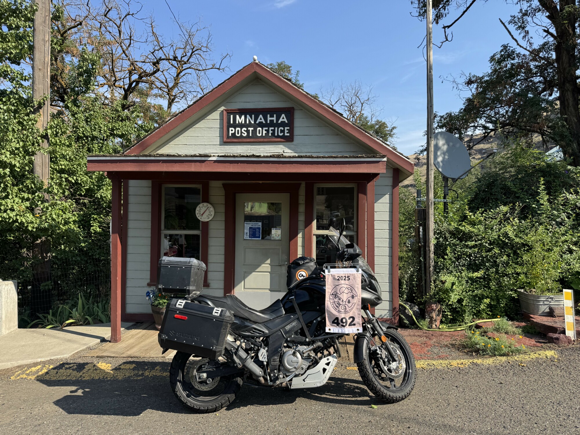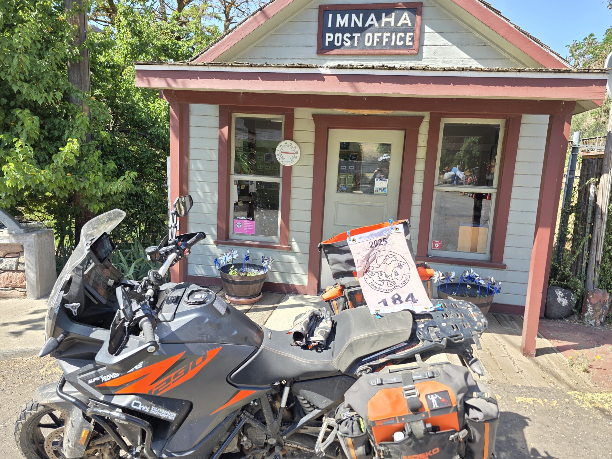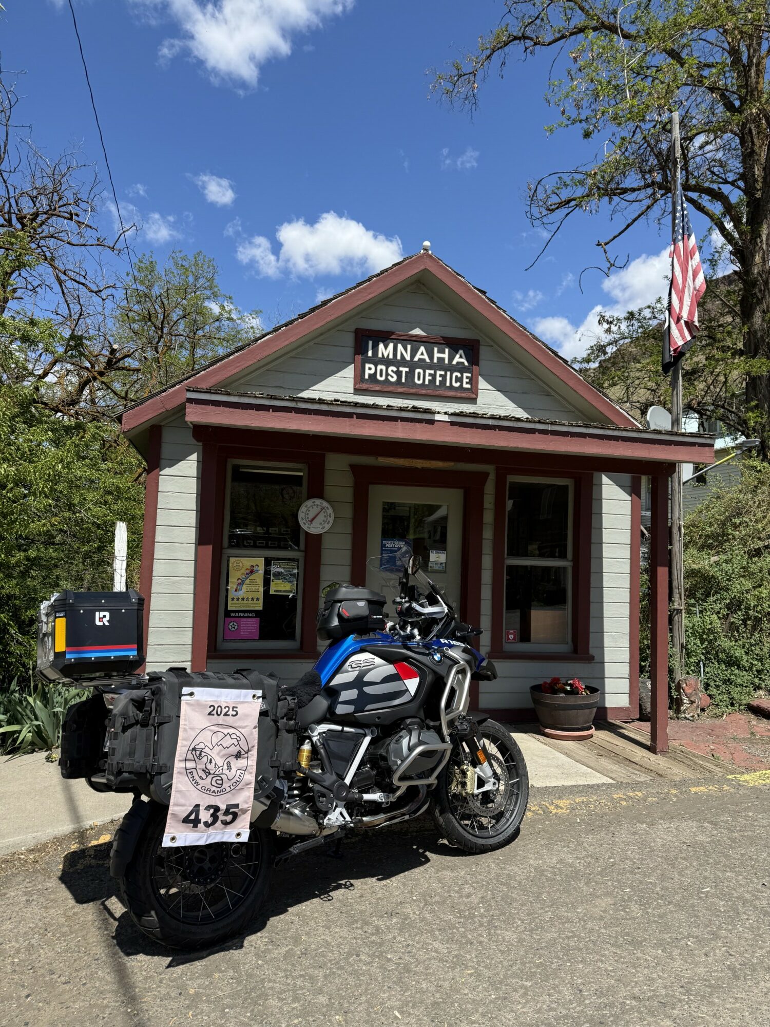 Take a picture of the Imnaha Post Office with your bike and flag in the picture.