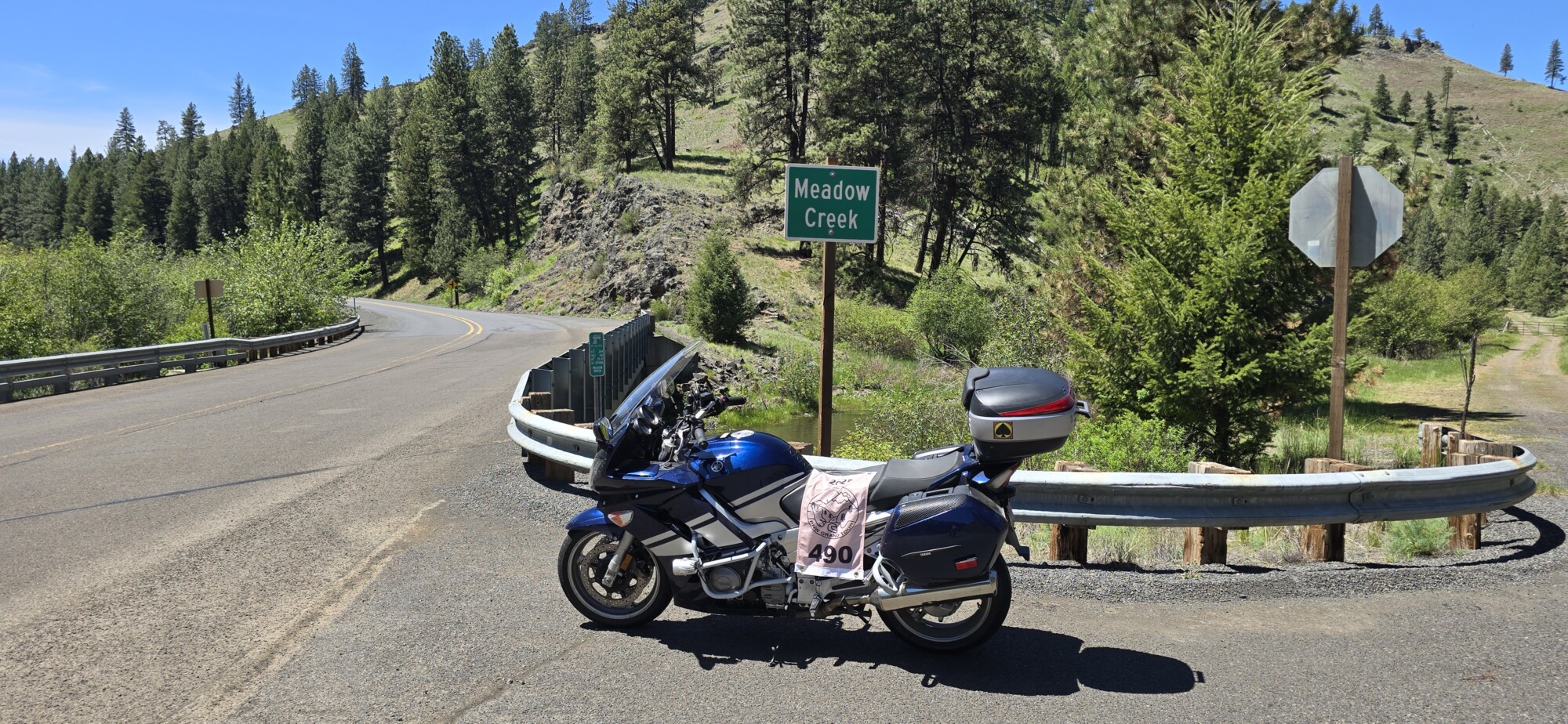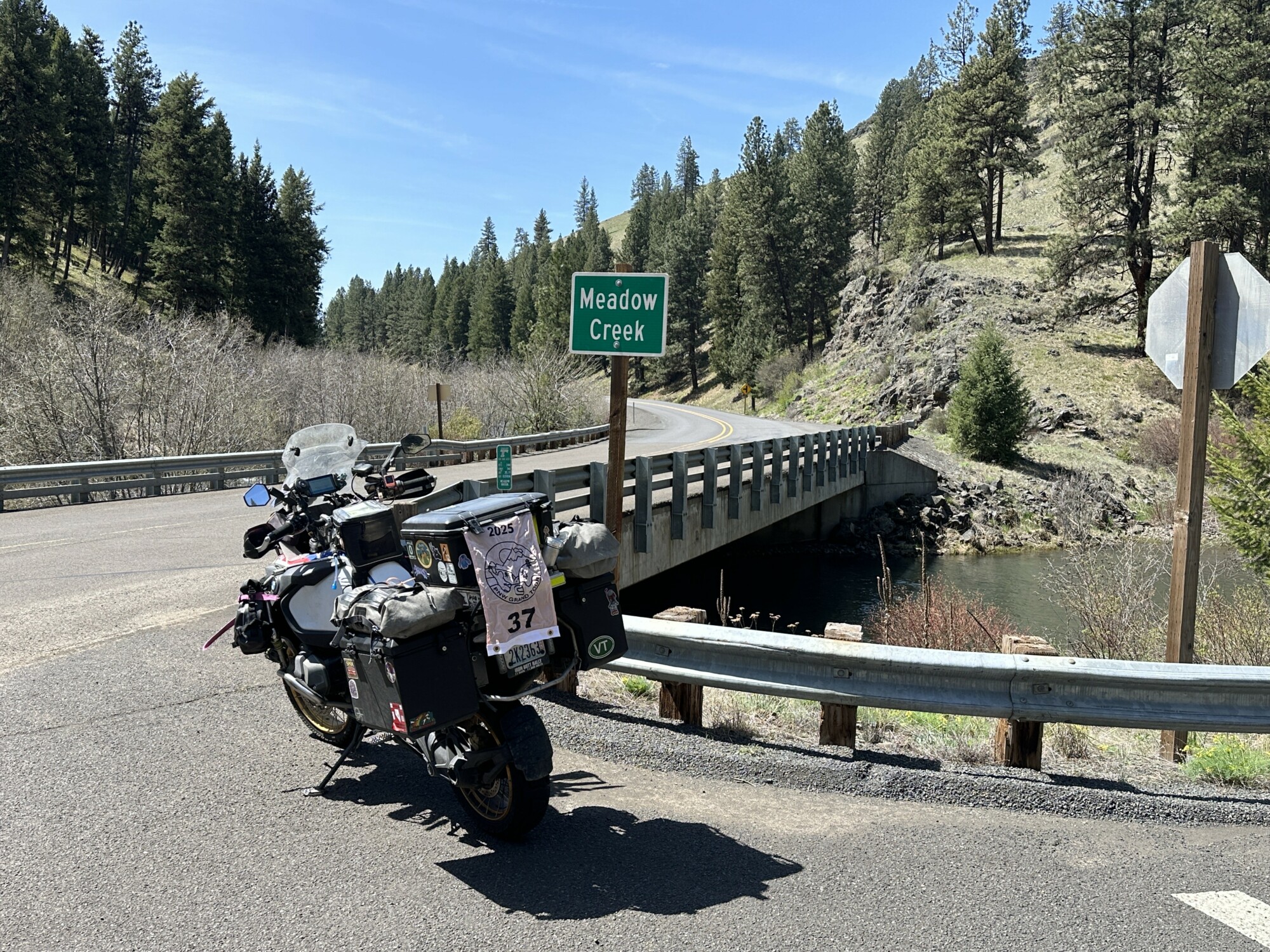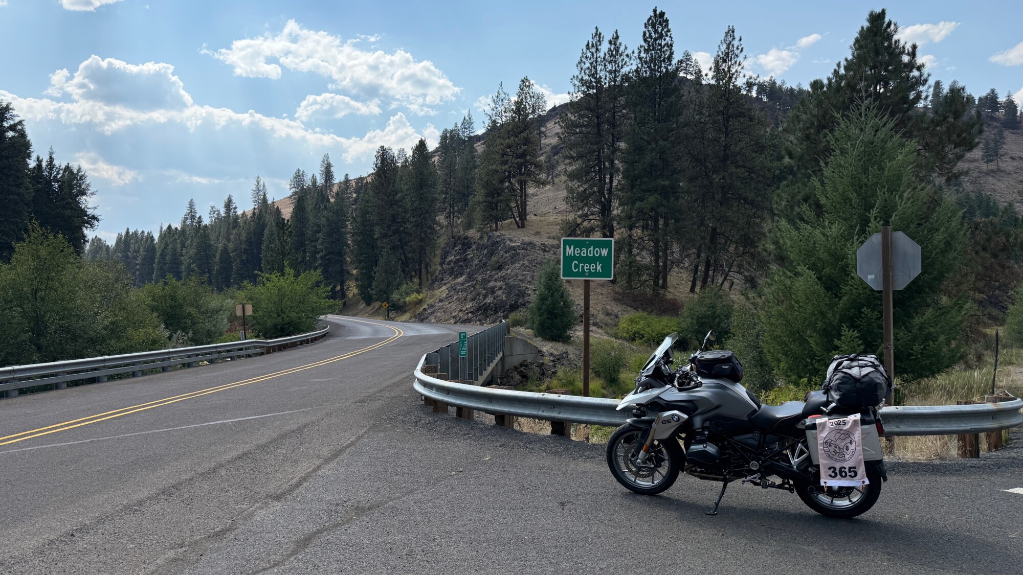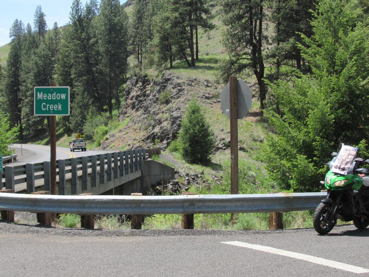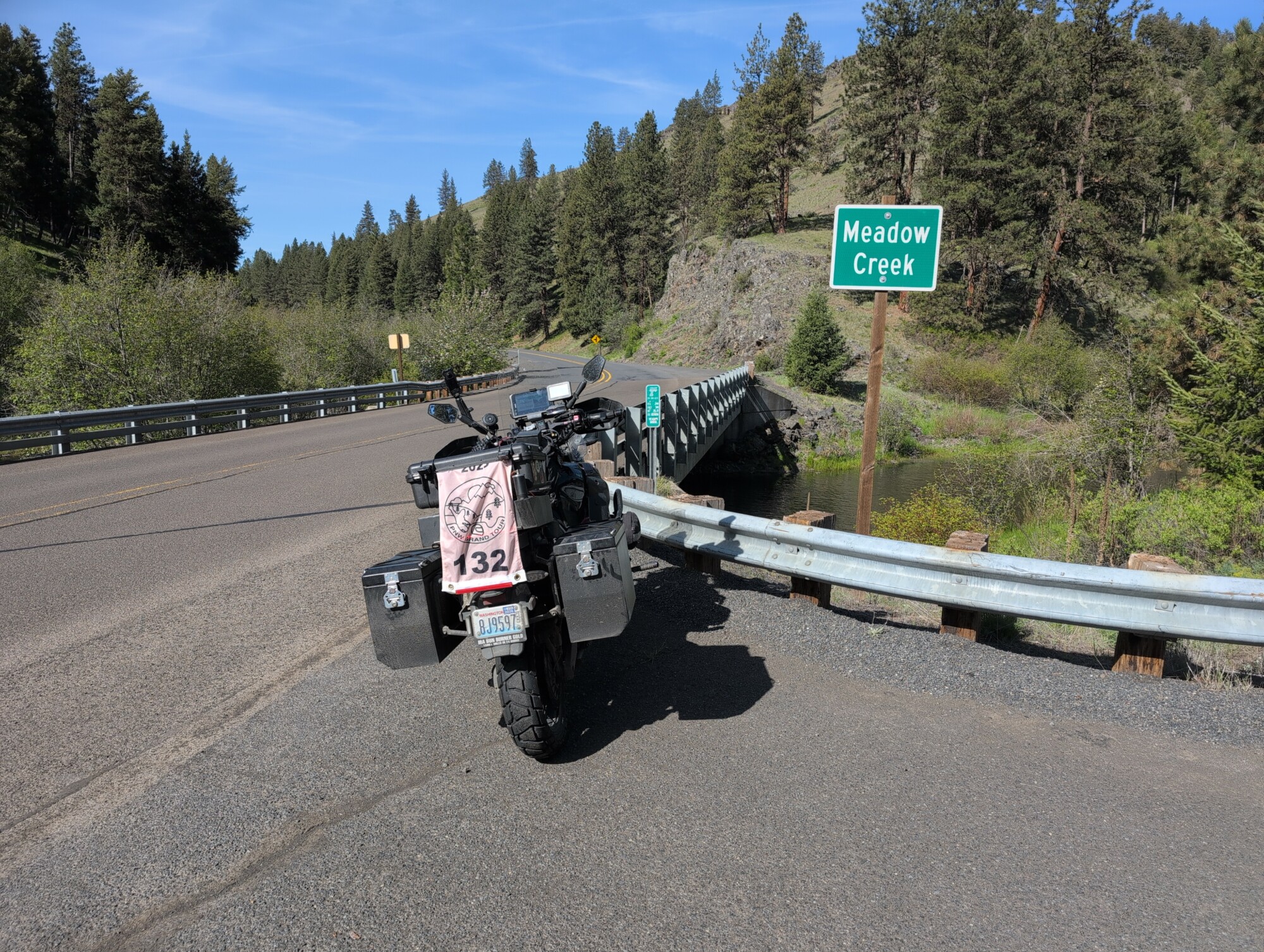 Take a picture of the Meadow Creek Bridge with your bike and flag in the picture.