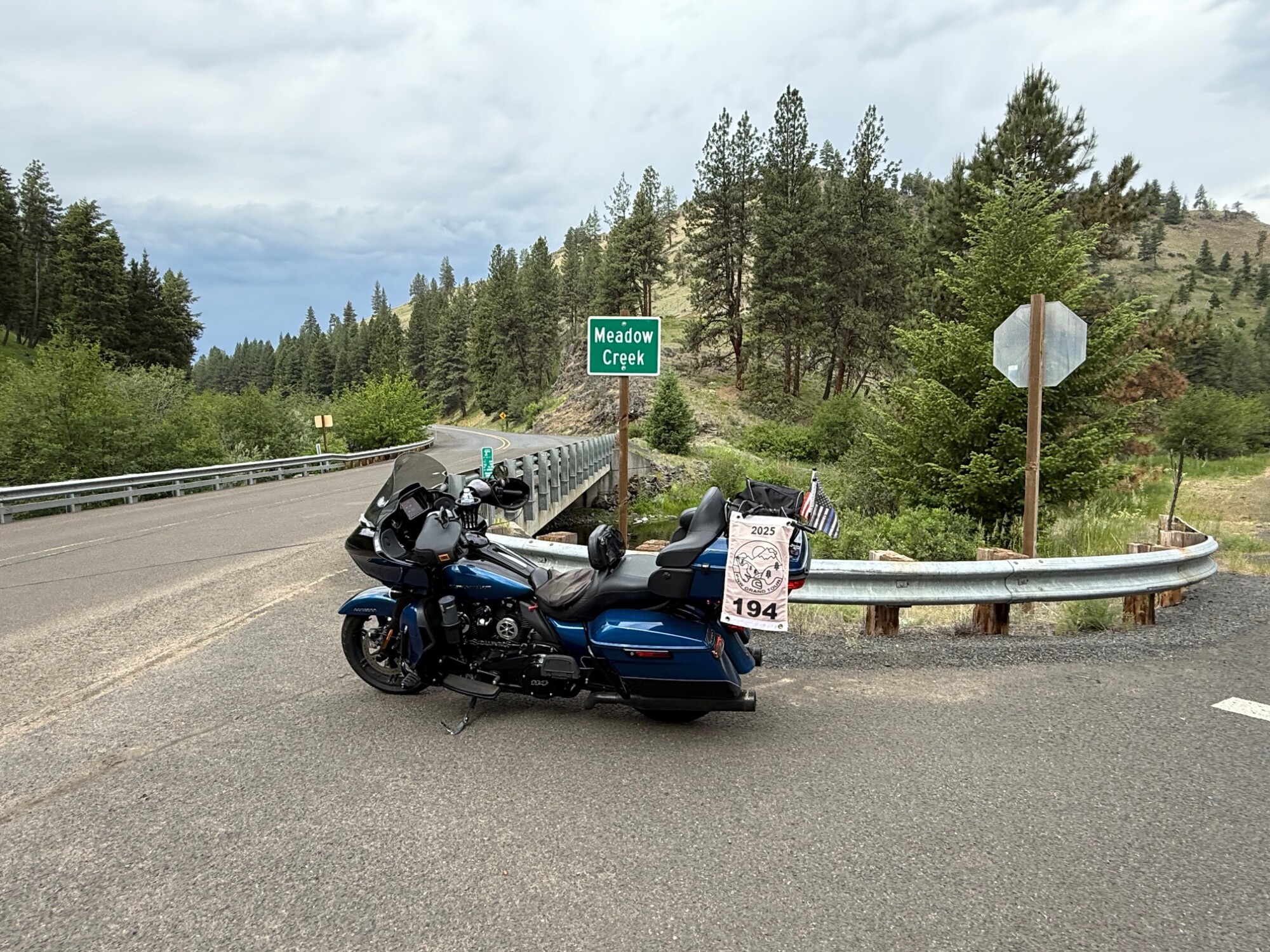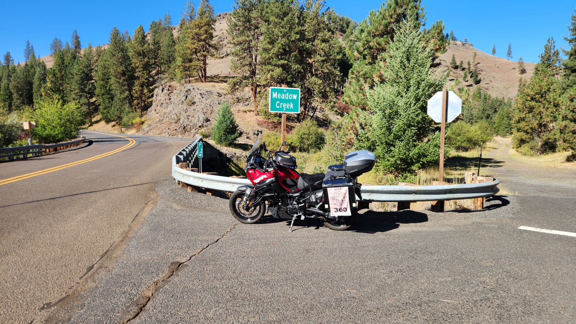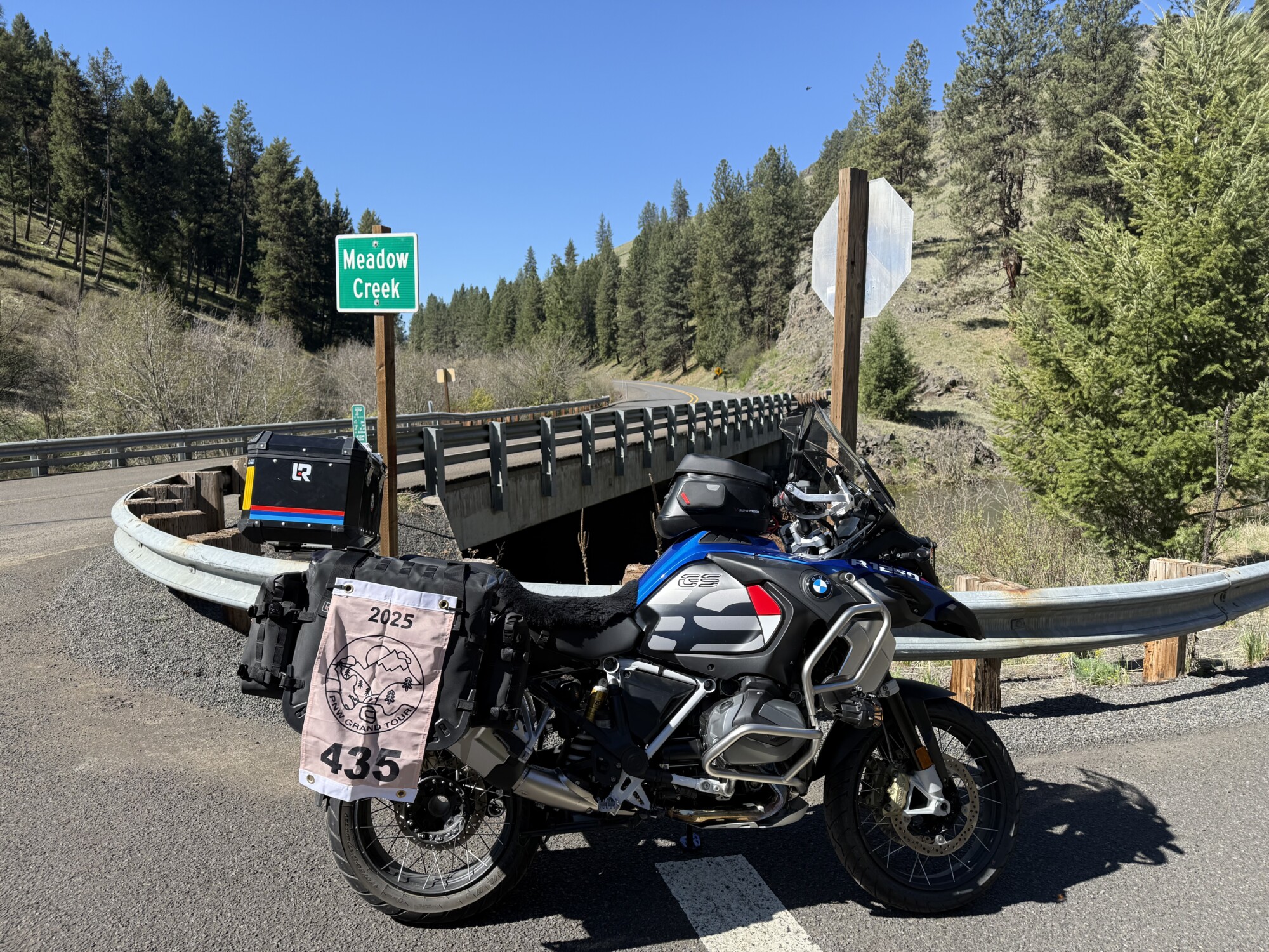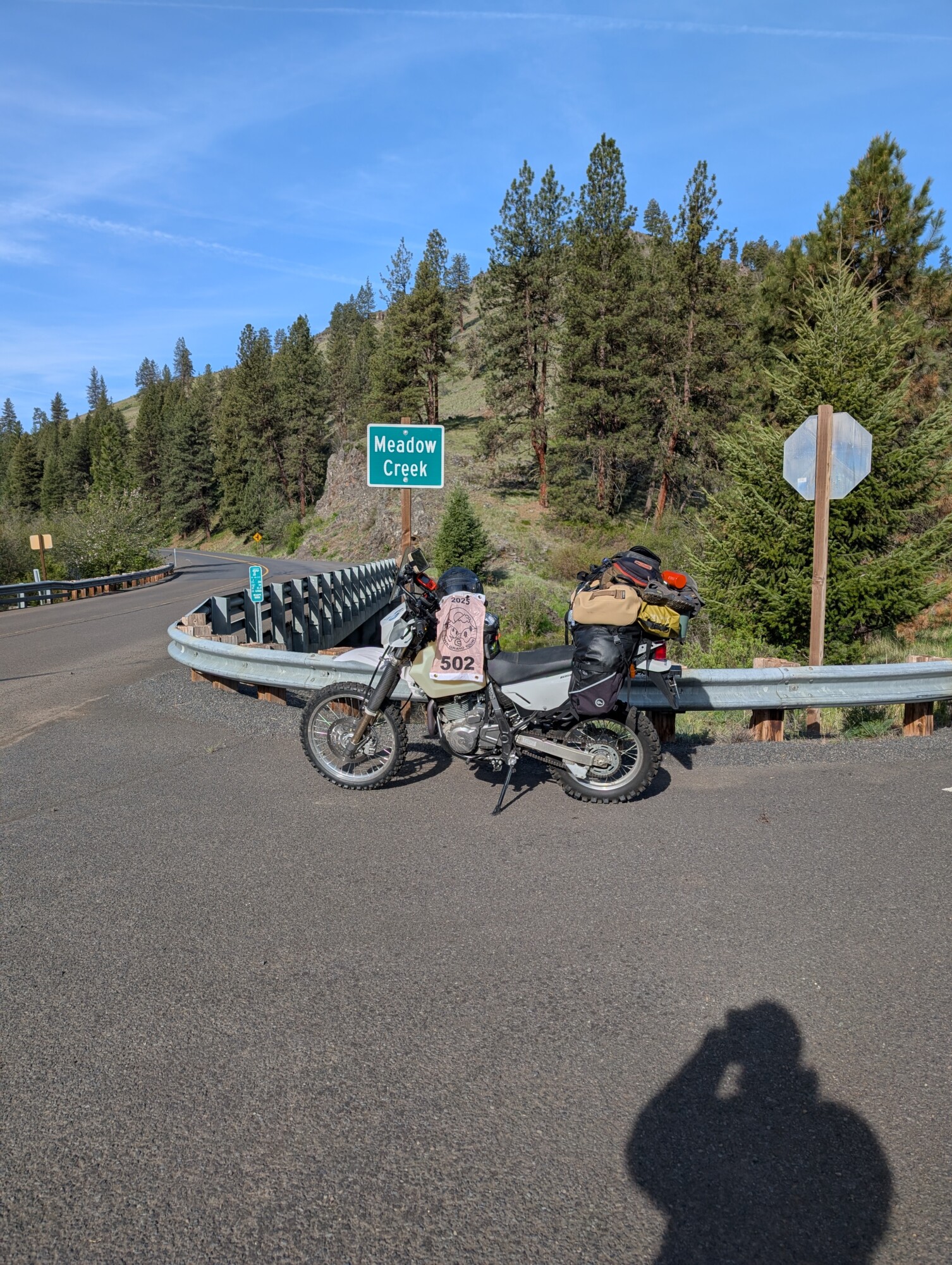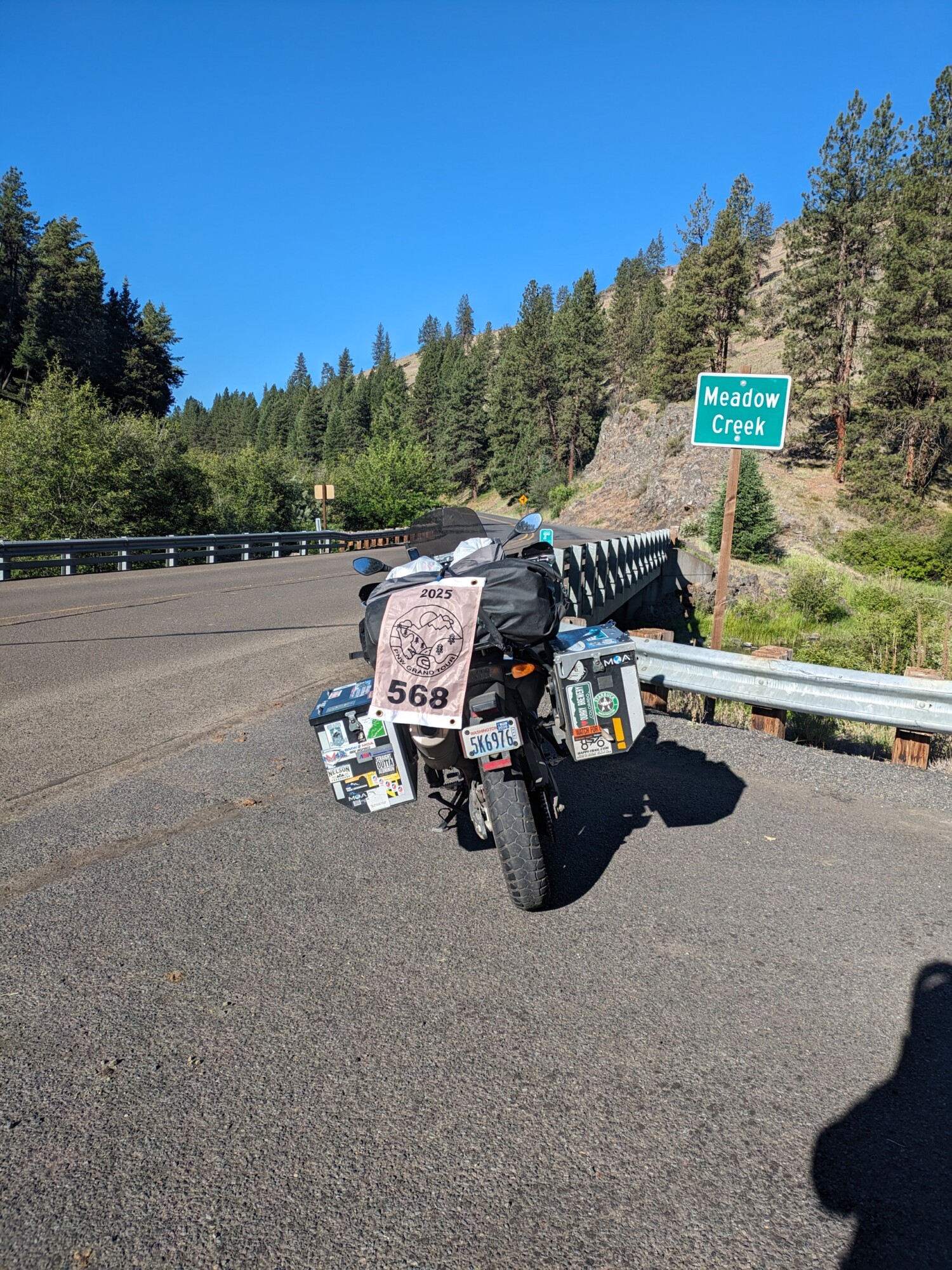 Take a picture of the Meadow Creek Bridge with your bike and flag in the picture.