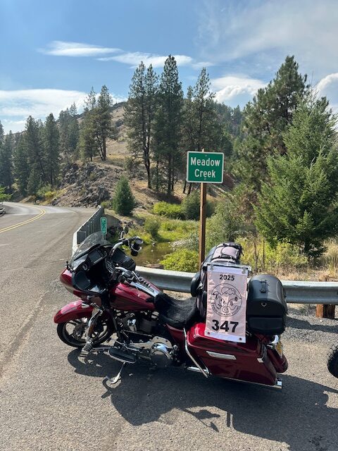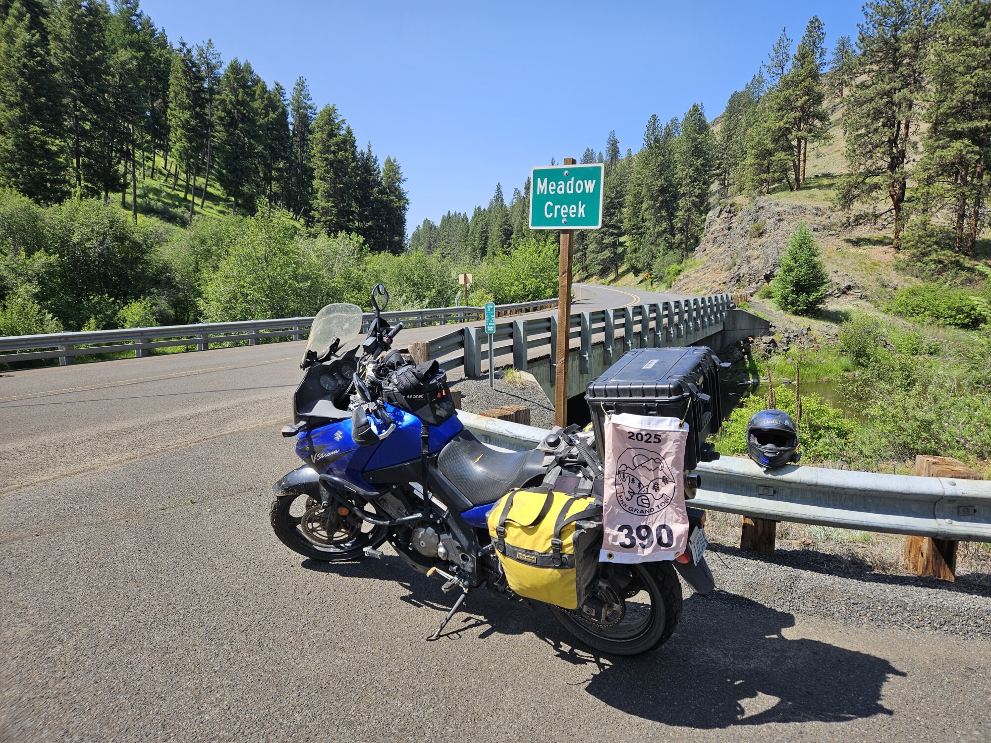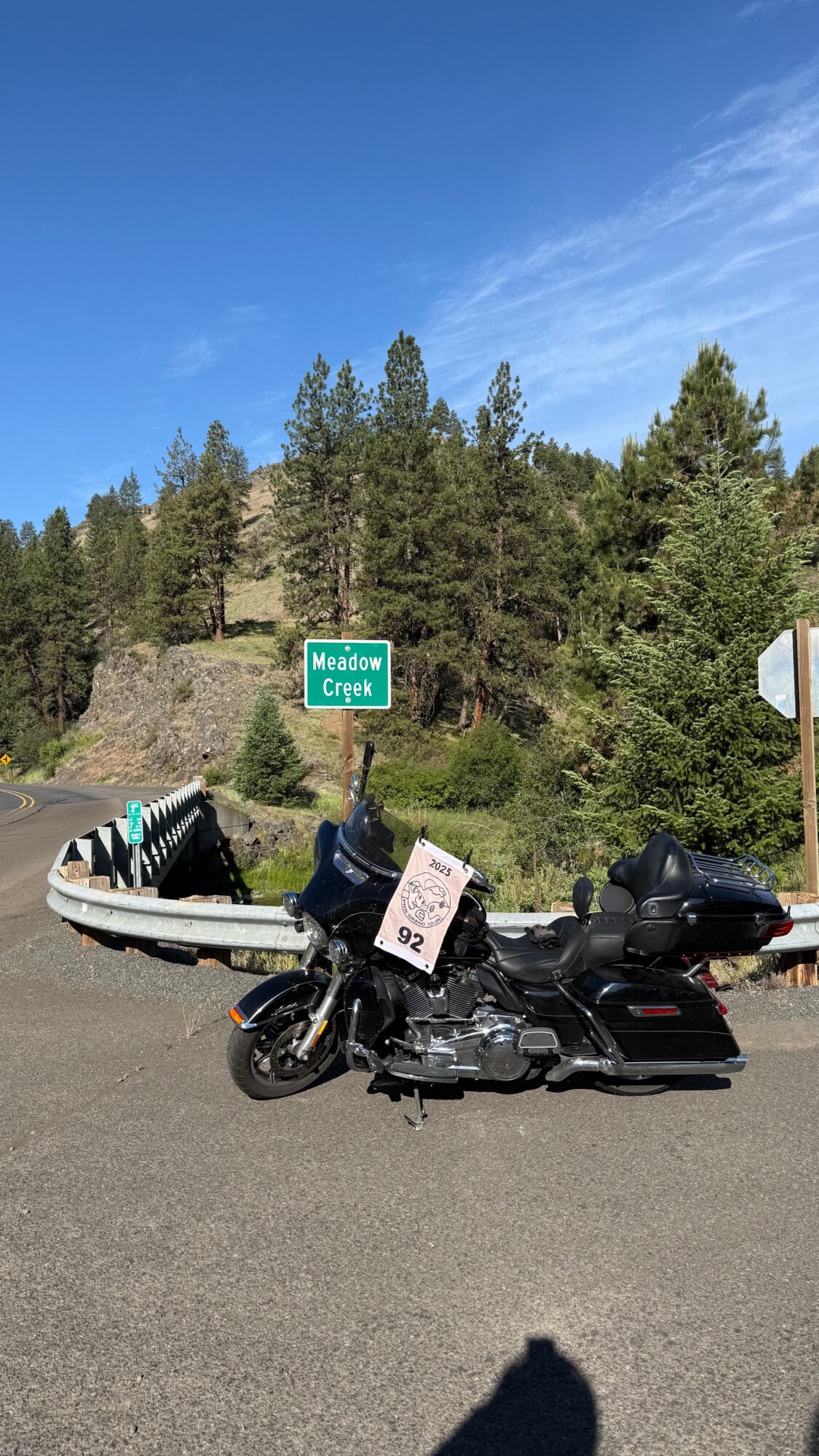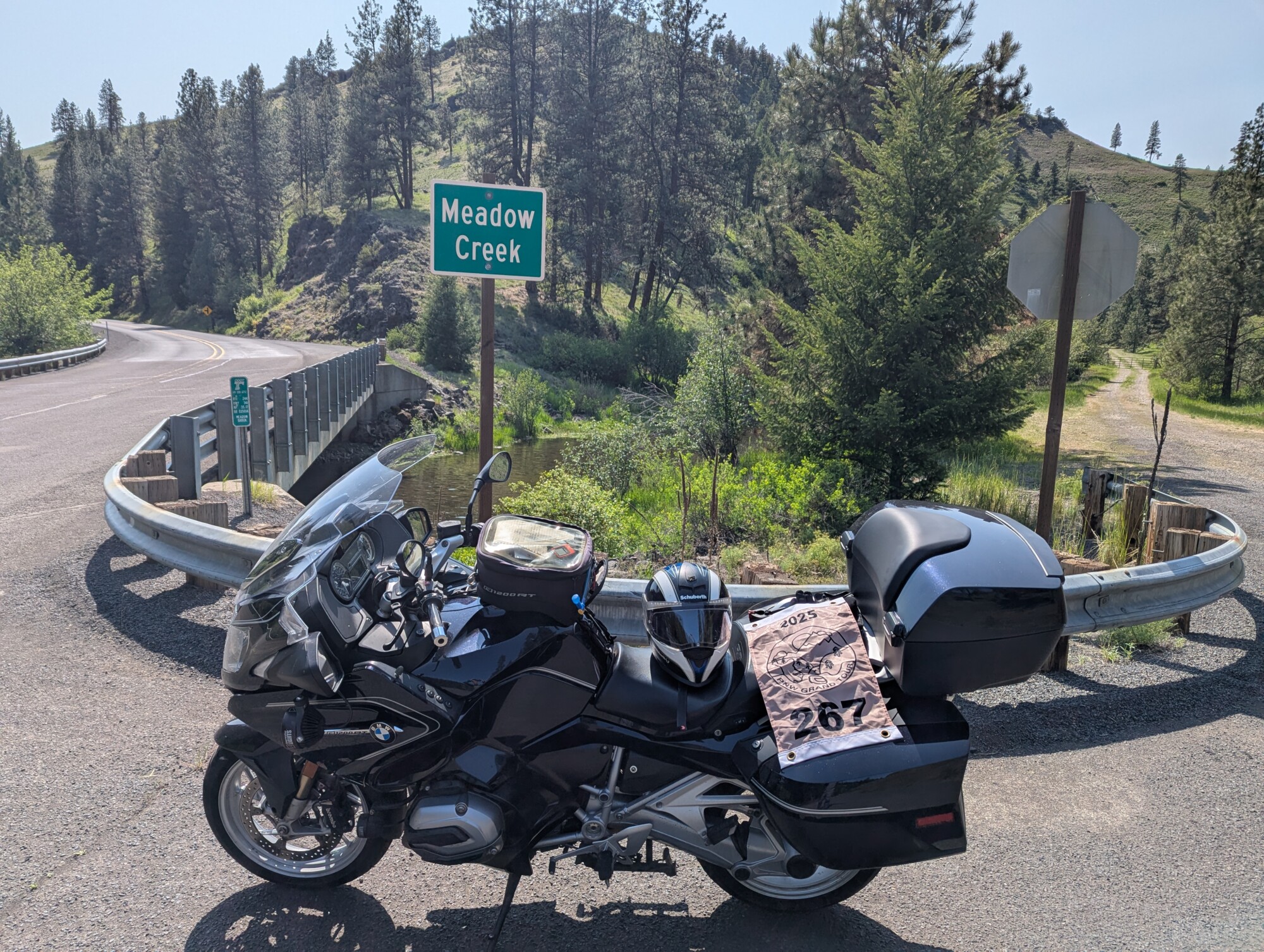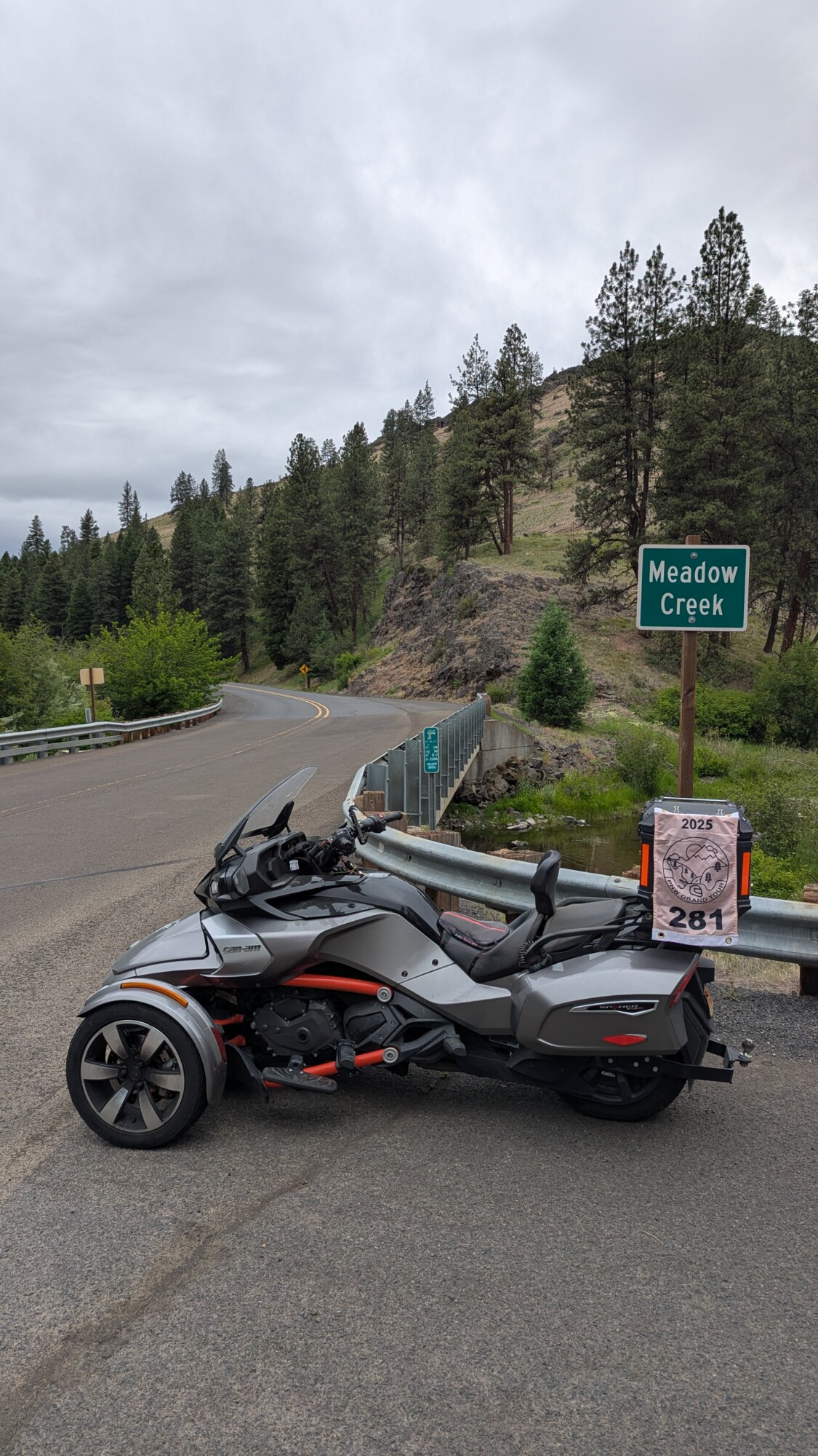 Take a picture of the Meadow Creek Bridge with your bike and flag in the picture.
