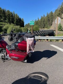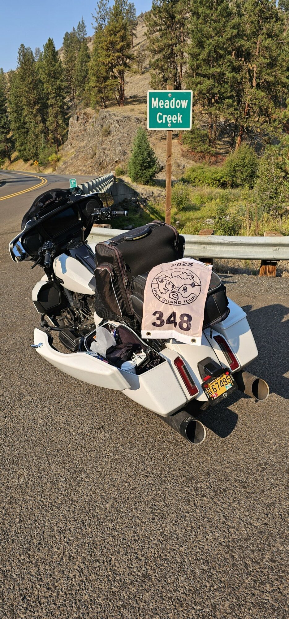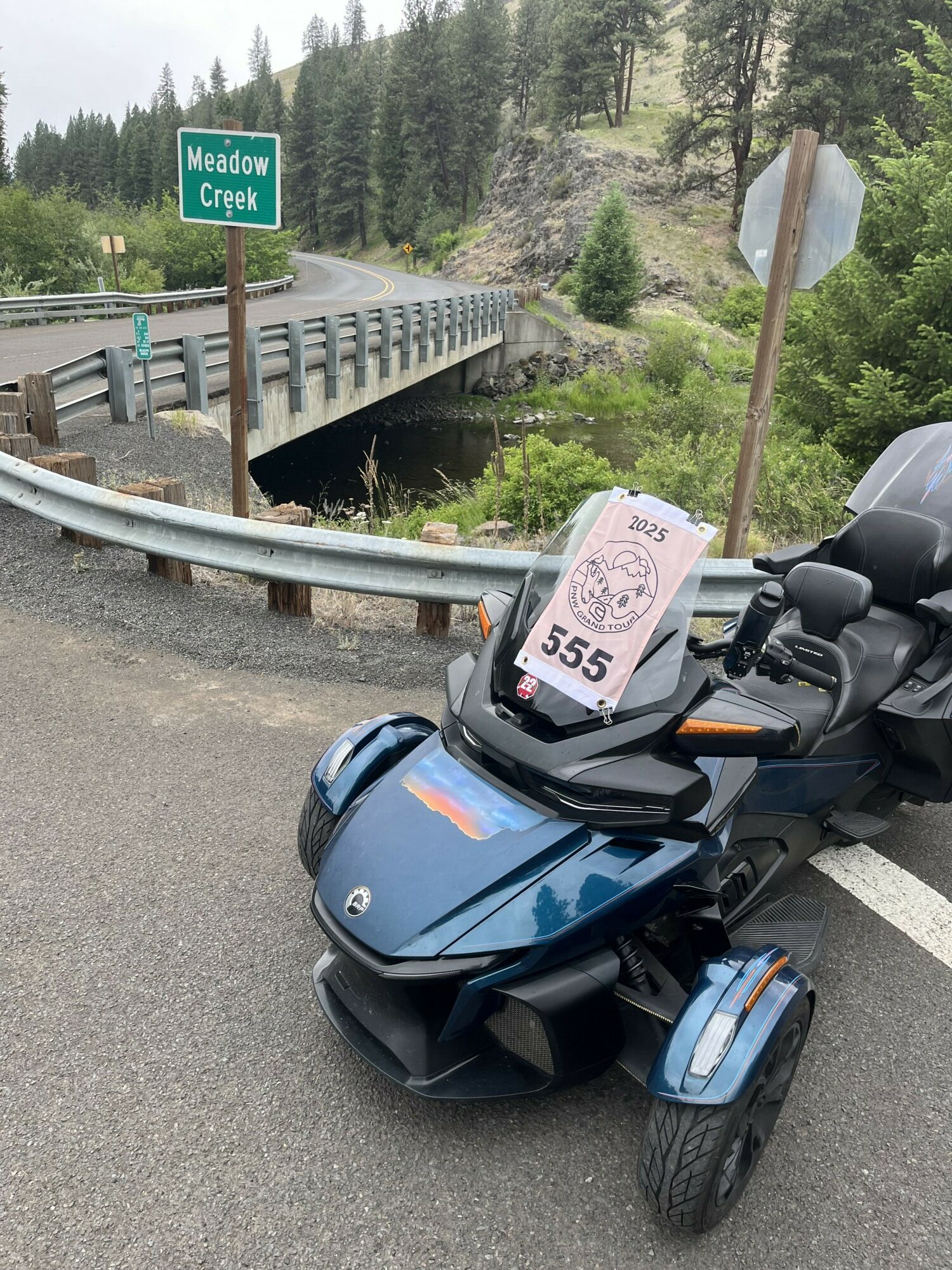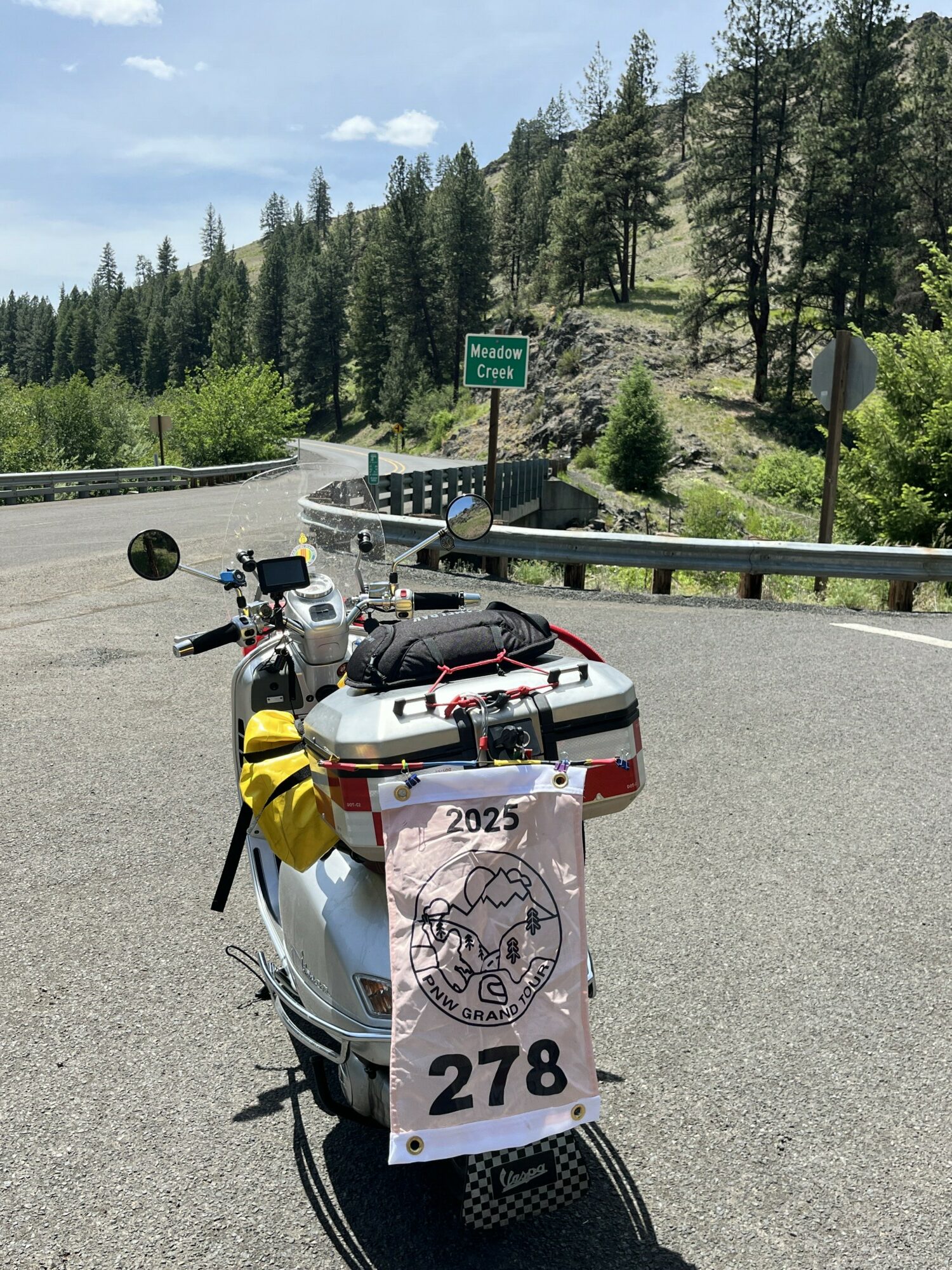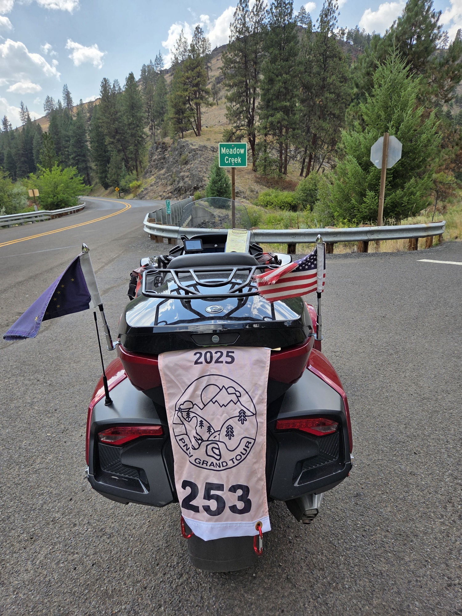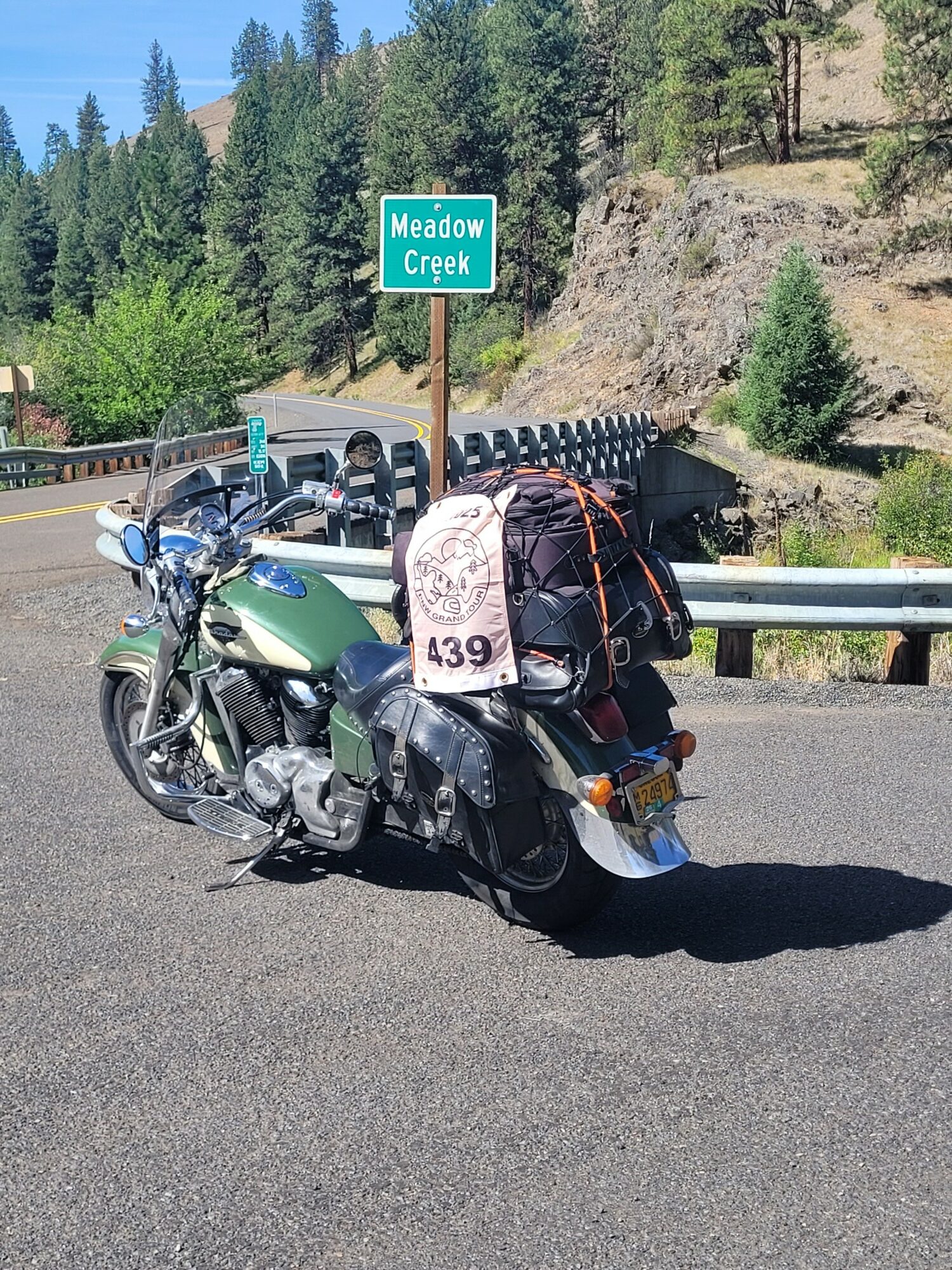 Take a picture of the Meadow Creek Bridge with your bike and flag in the picture.