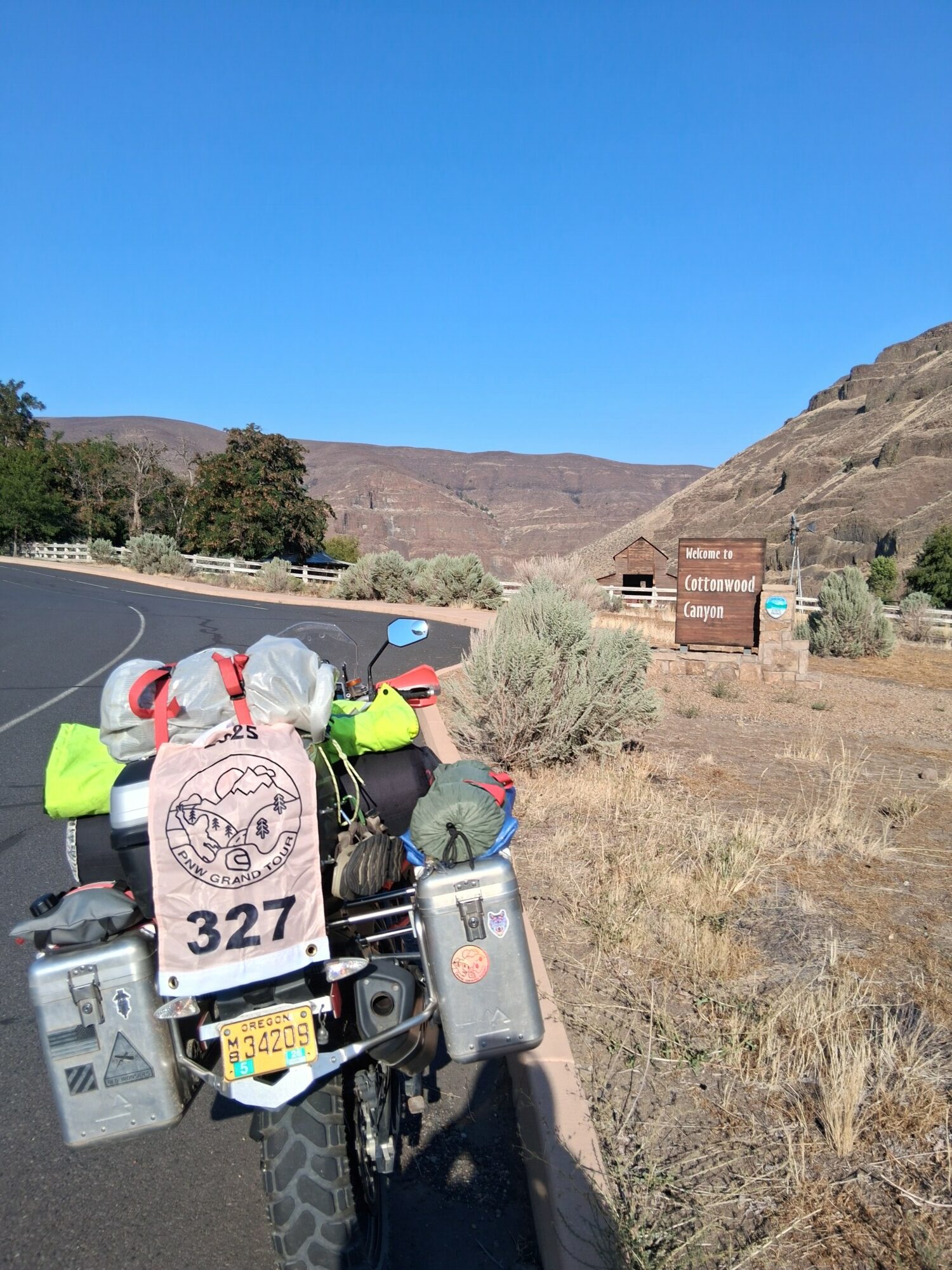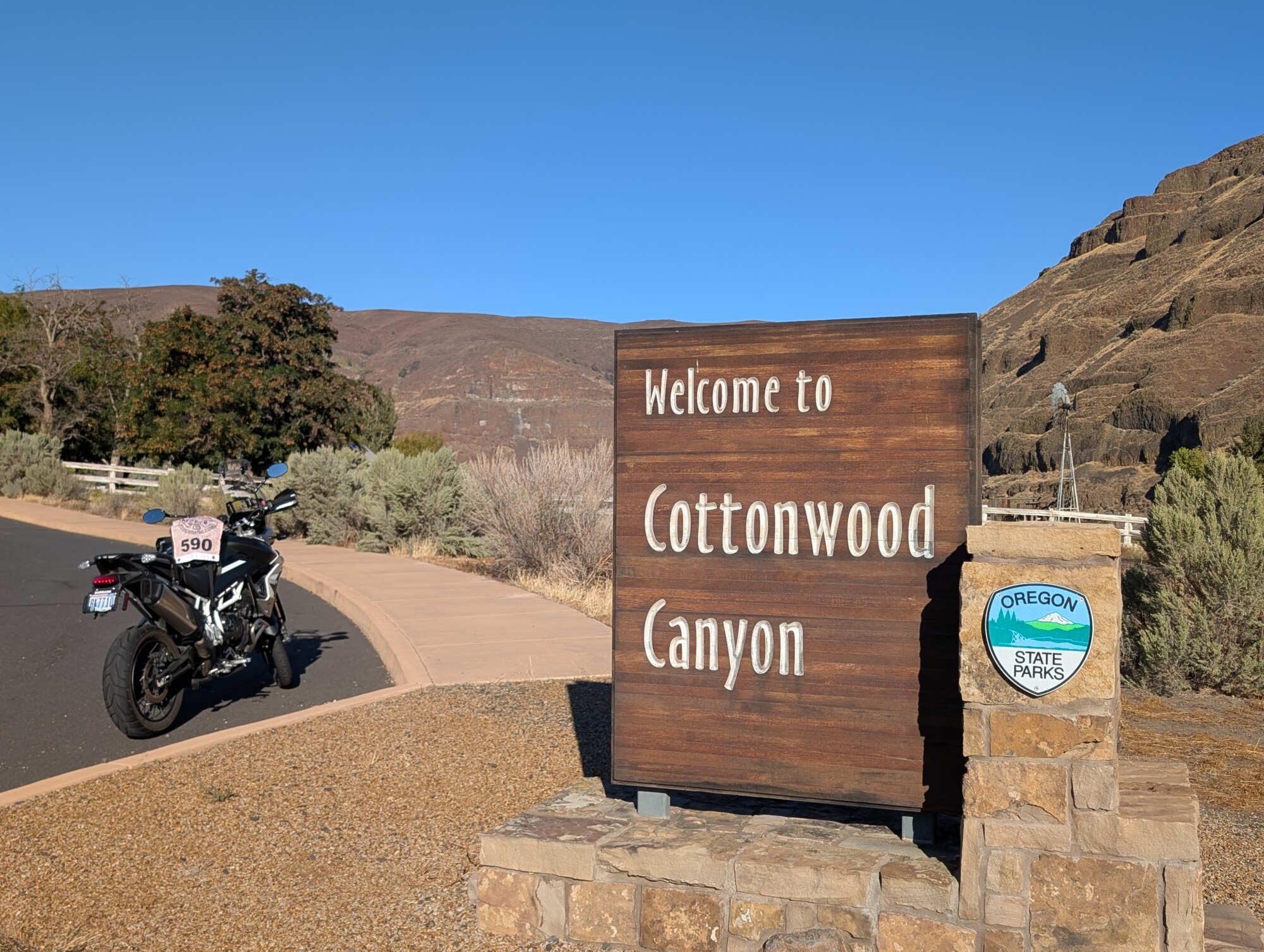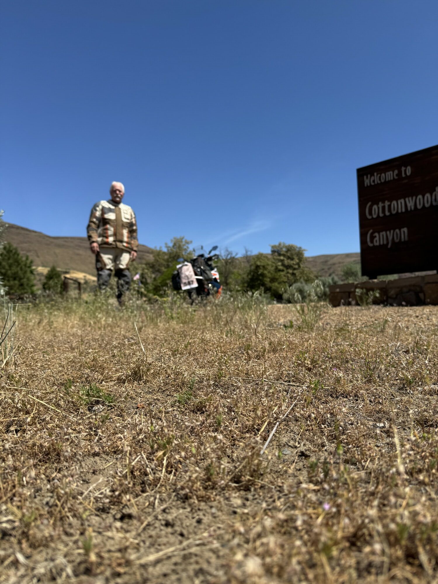 Take a picture of the Cottonwood Canyon Welcome sign with your bike and flag in the picture.