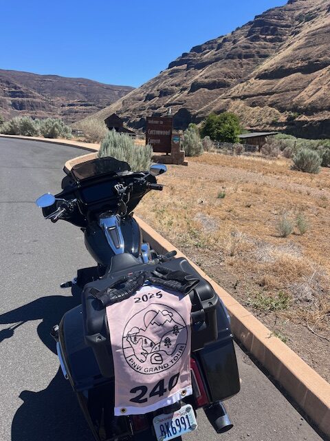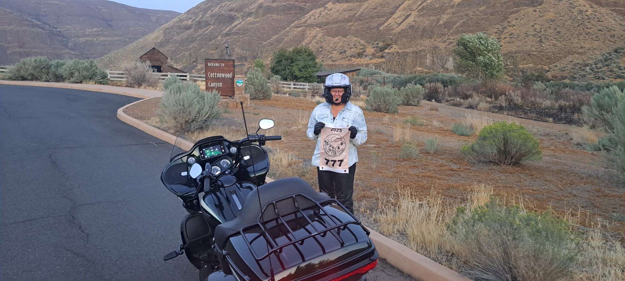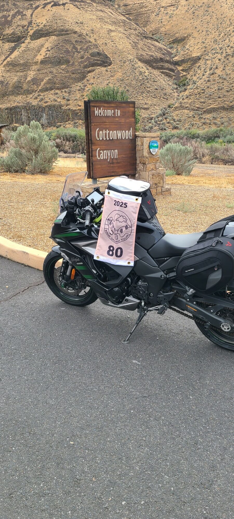 Take a picture of the Cottonwood Canyon Welcome sign with your bike and flag in the picture.