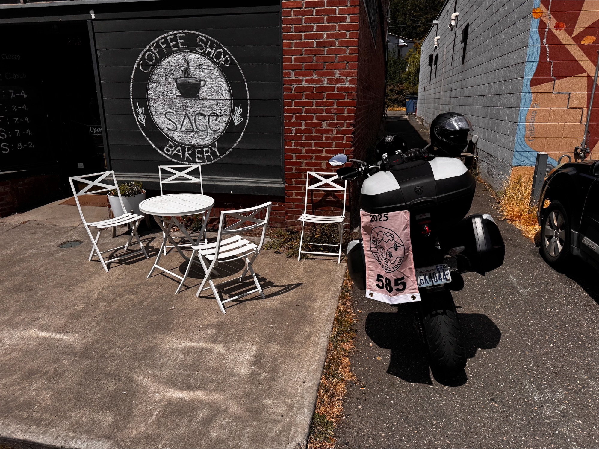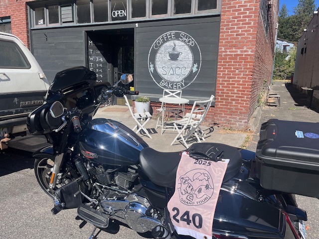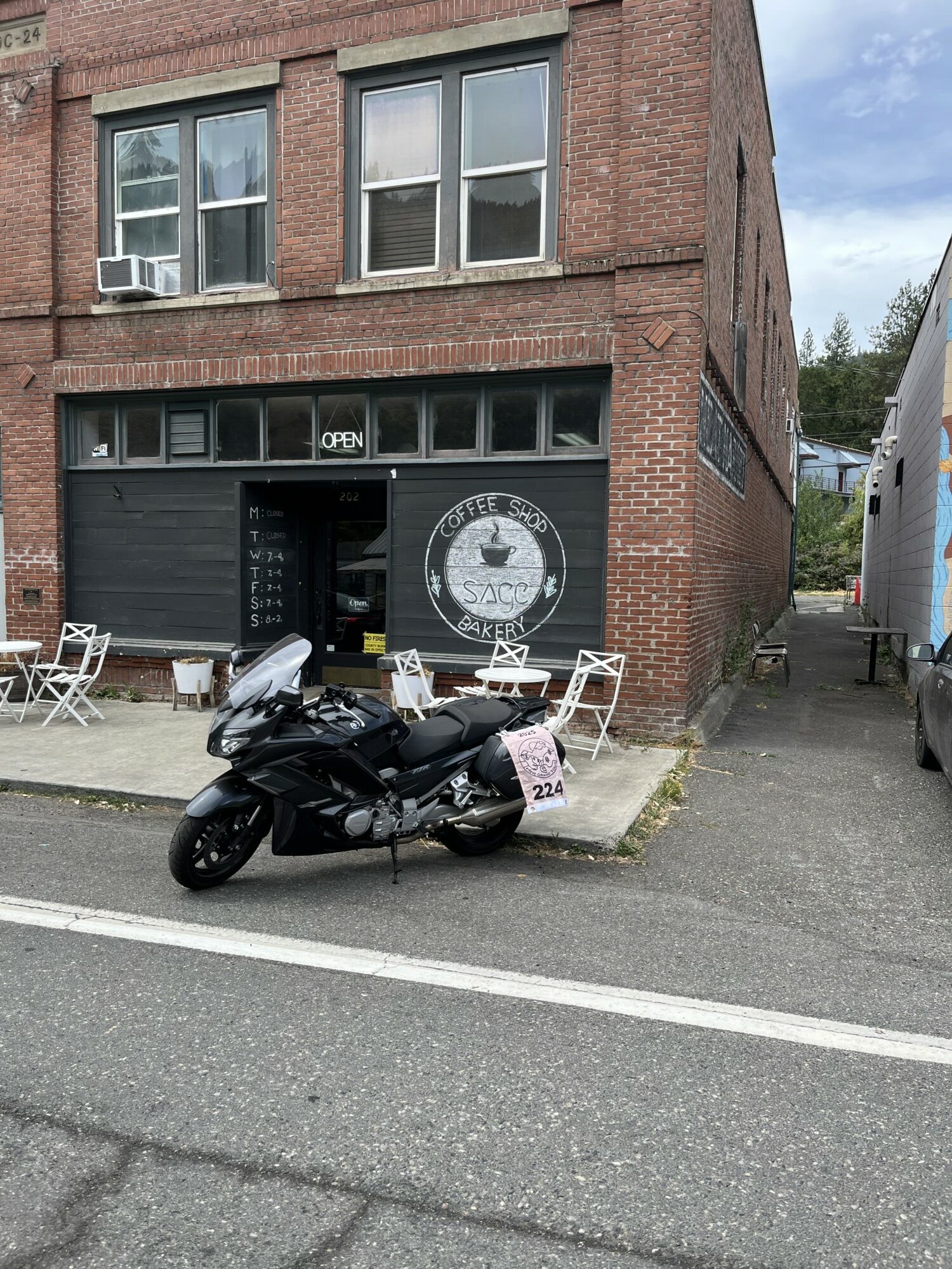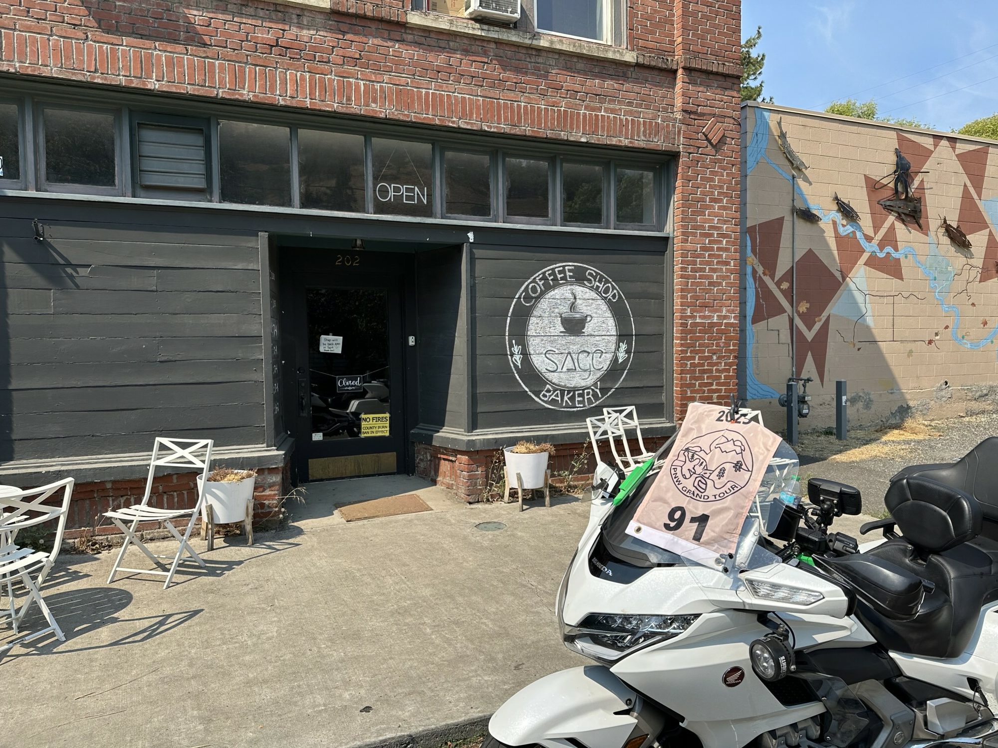 Take a picture of the Sage Coffee Shop with your bike and flag in the picture. You may have to take the picture from across the street.