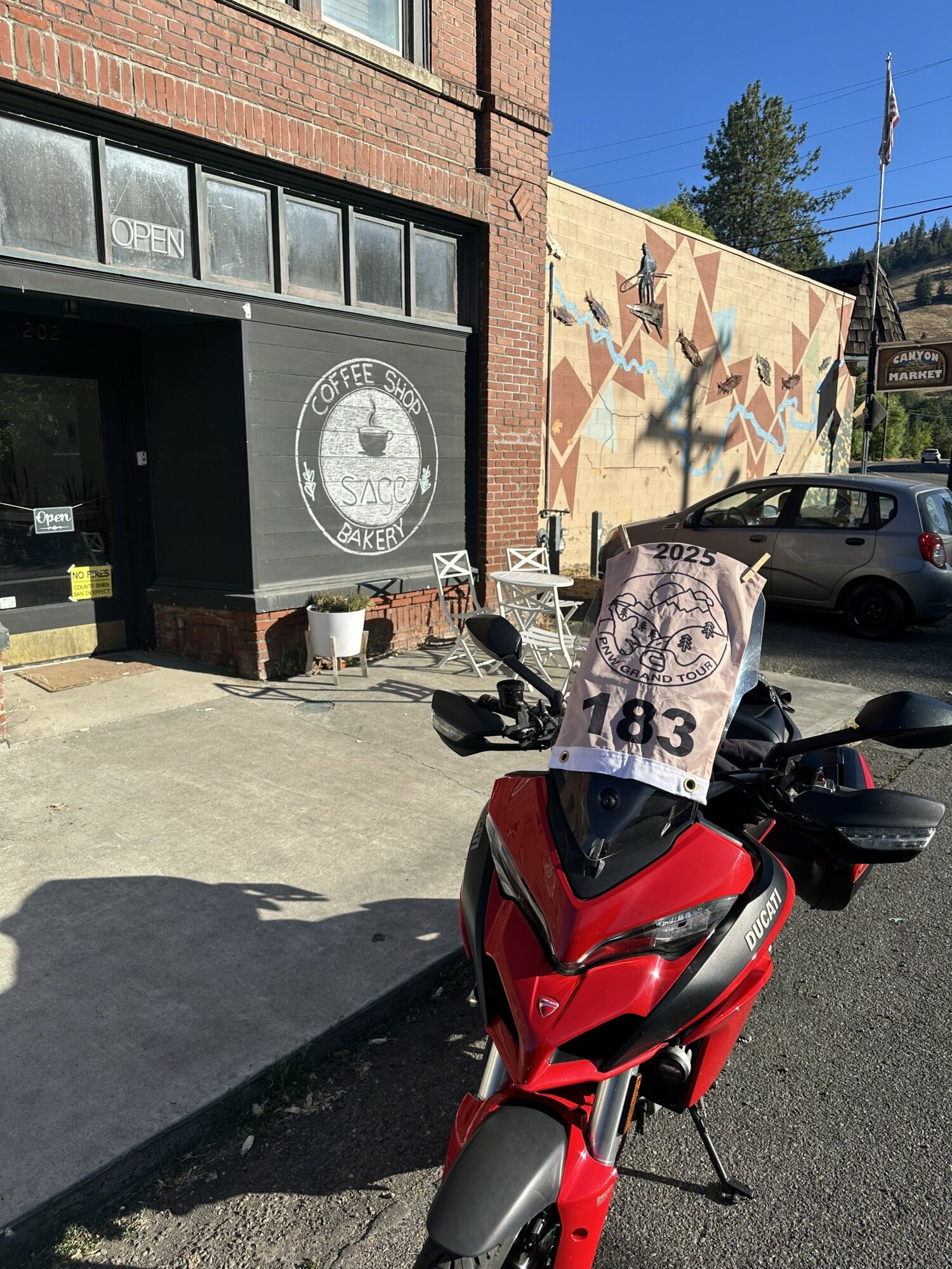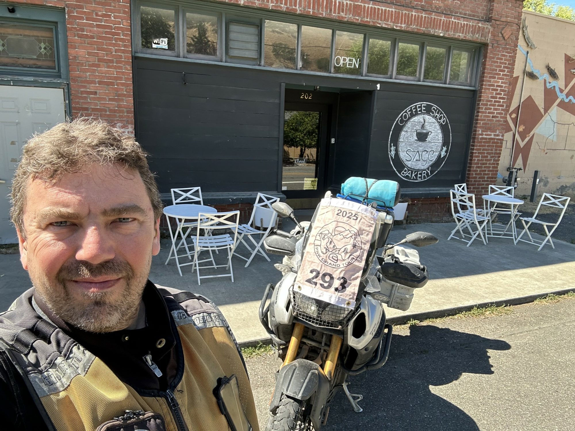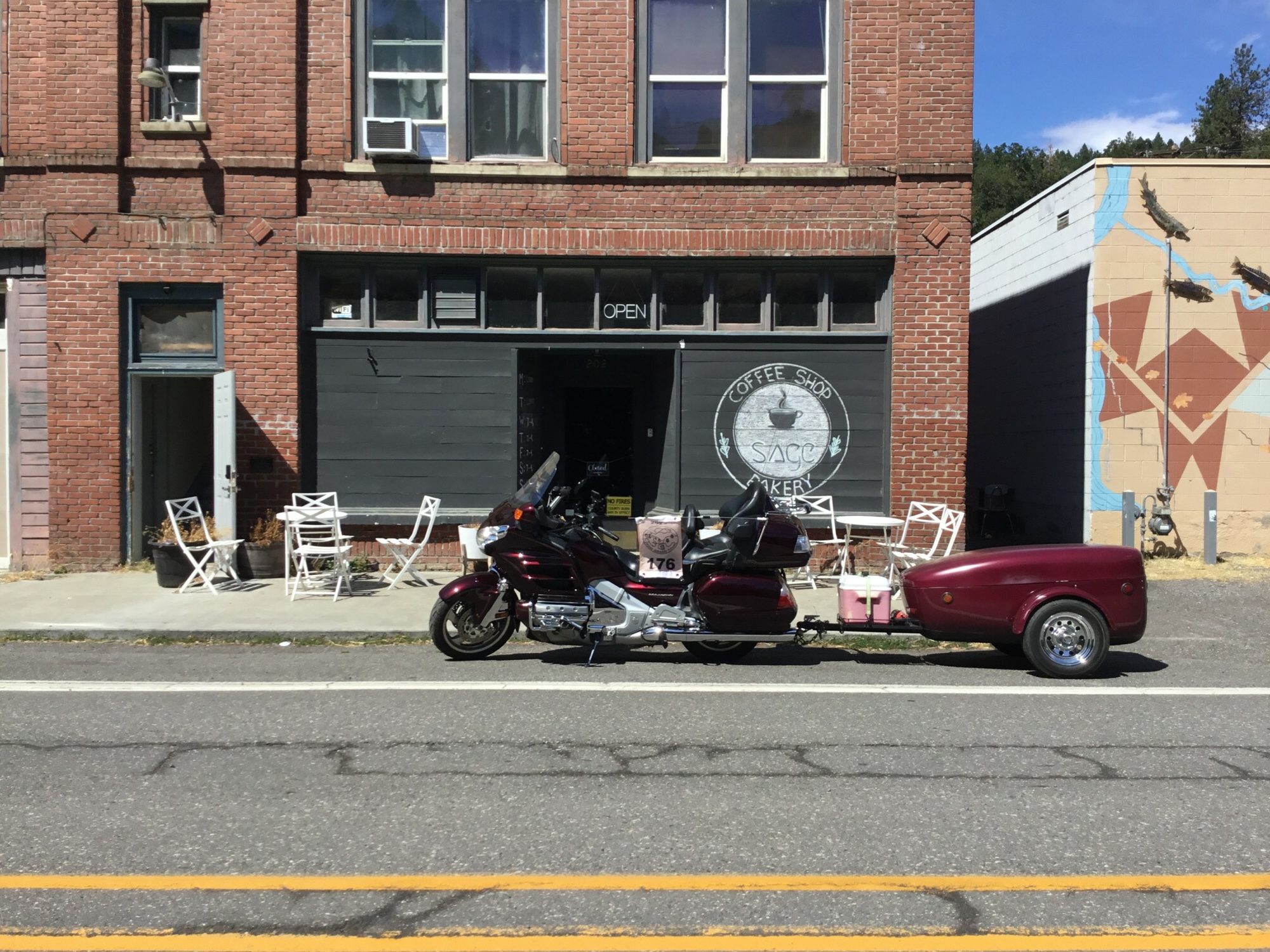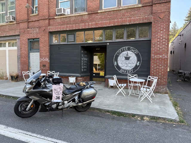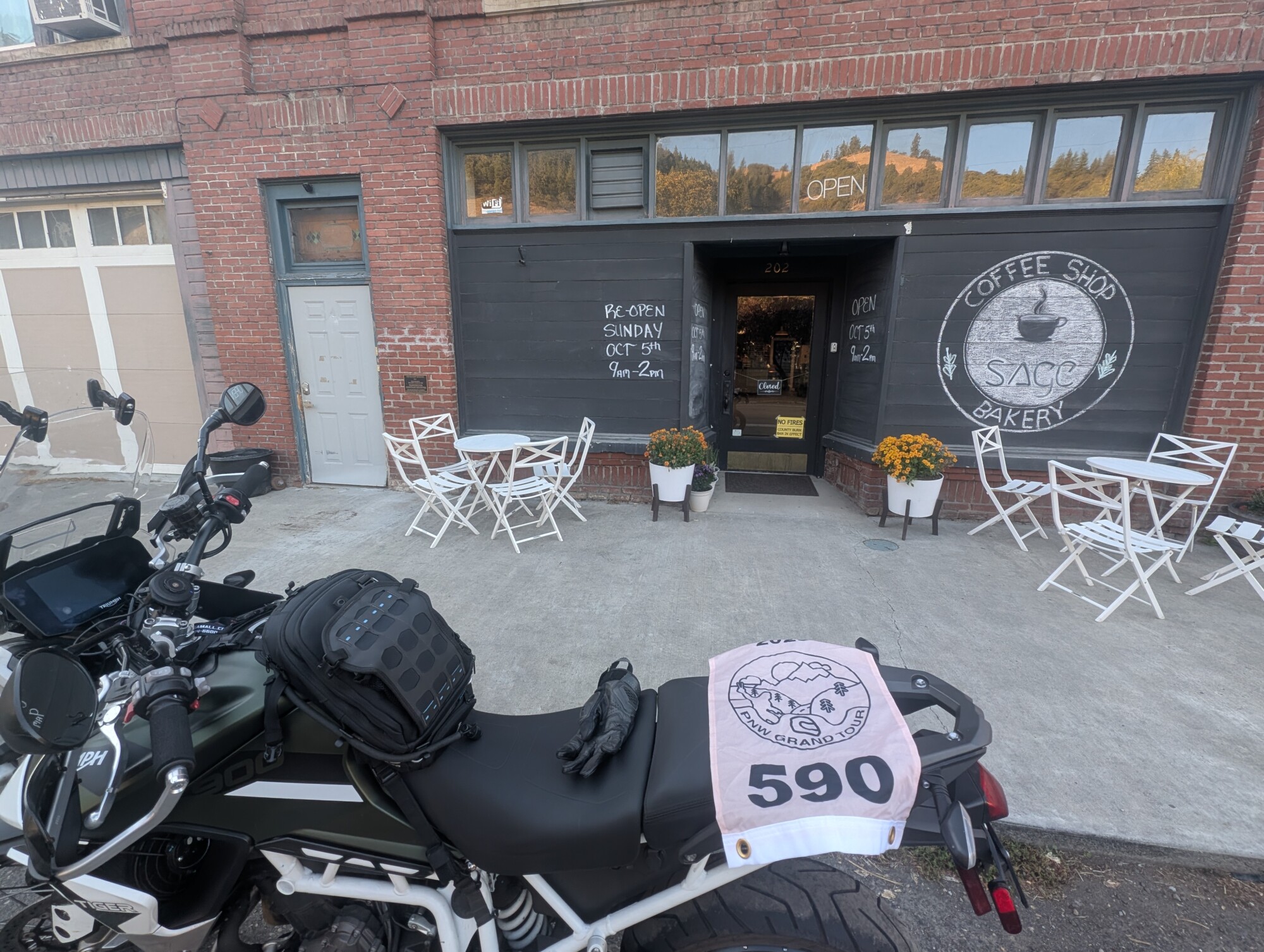 Take a picture of the Sage Coffee Shop with your bike and flag in the picture. You may have to take the picture from across the street.