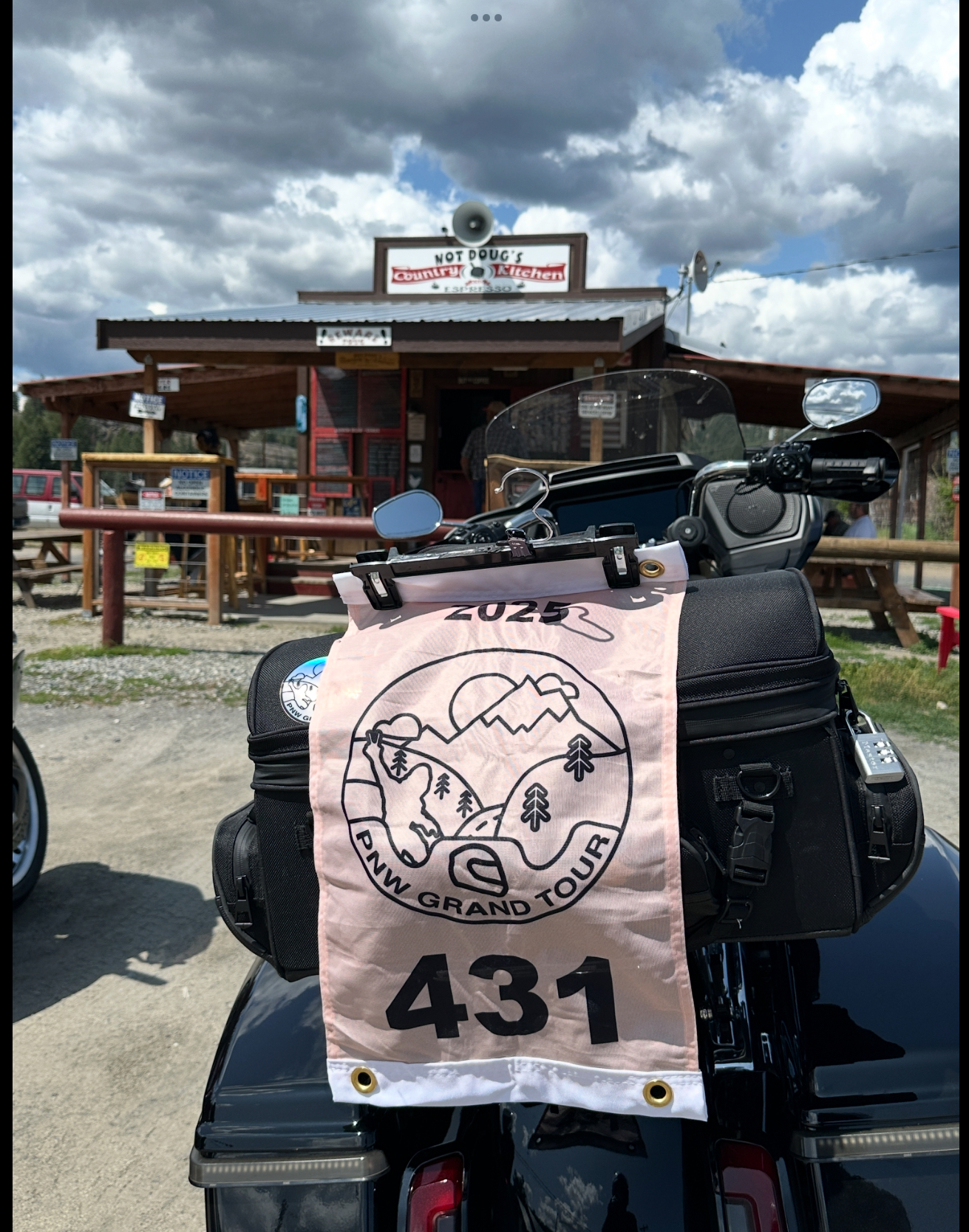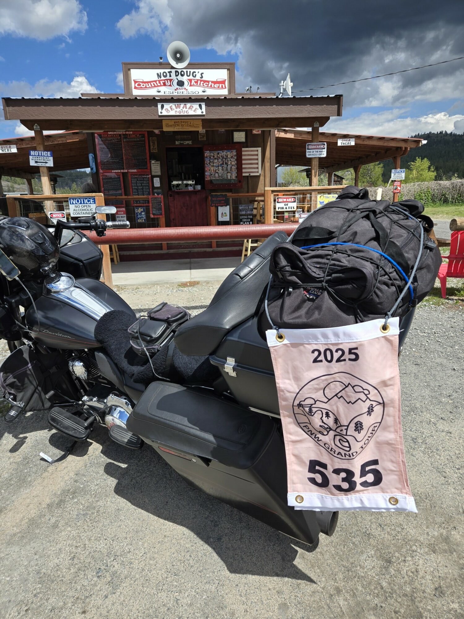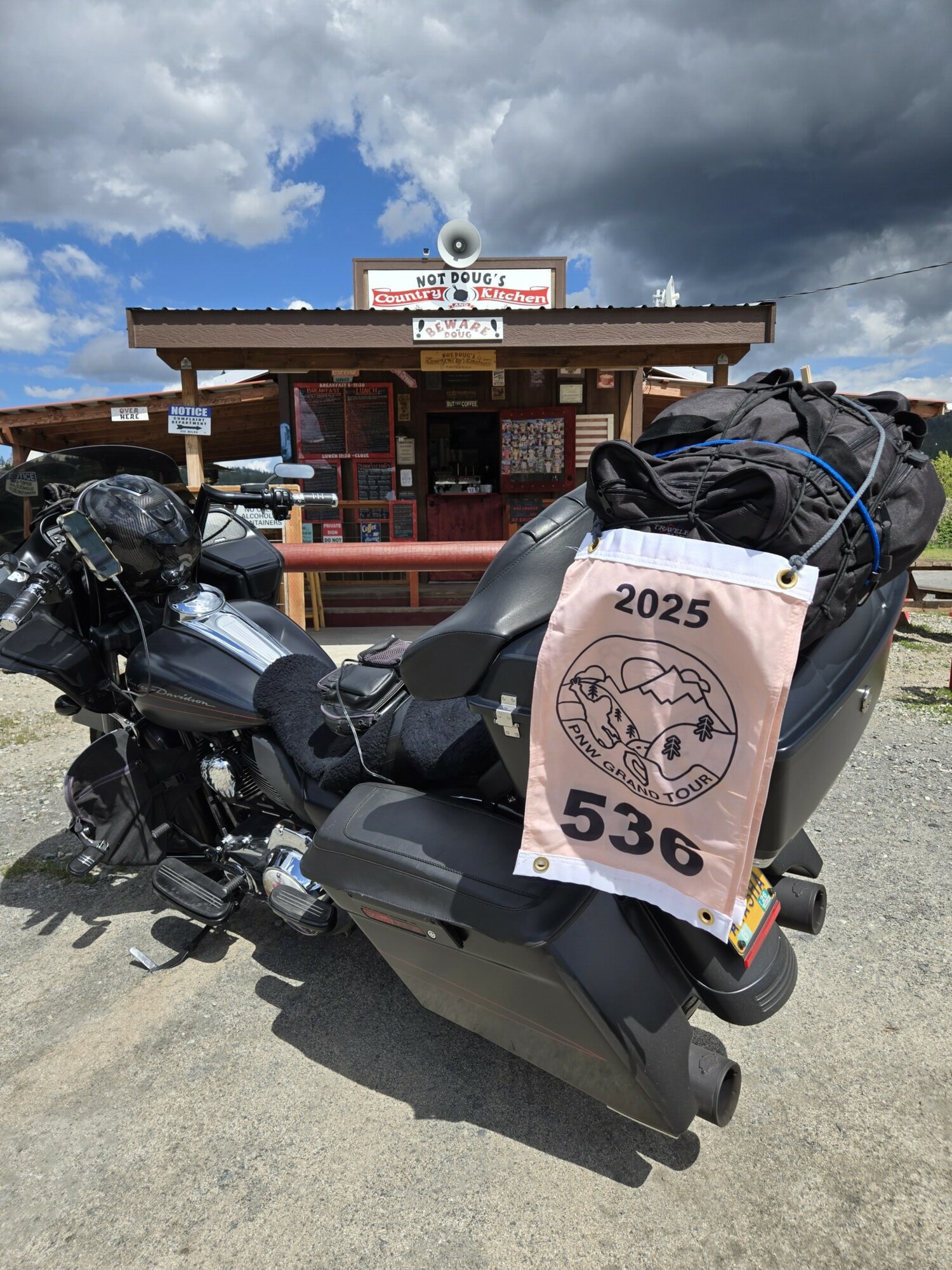 Take a picture of Not Doug’s Country Kitchen with your bike and flag in the picture!