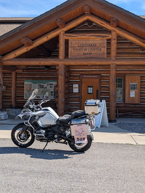 Take a picture of the Lolo Pass Visitor Center with your bike and flag in the picture.