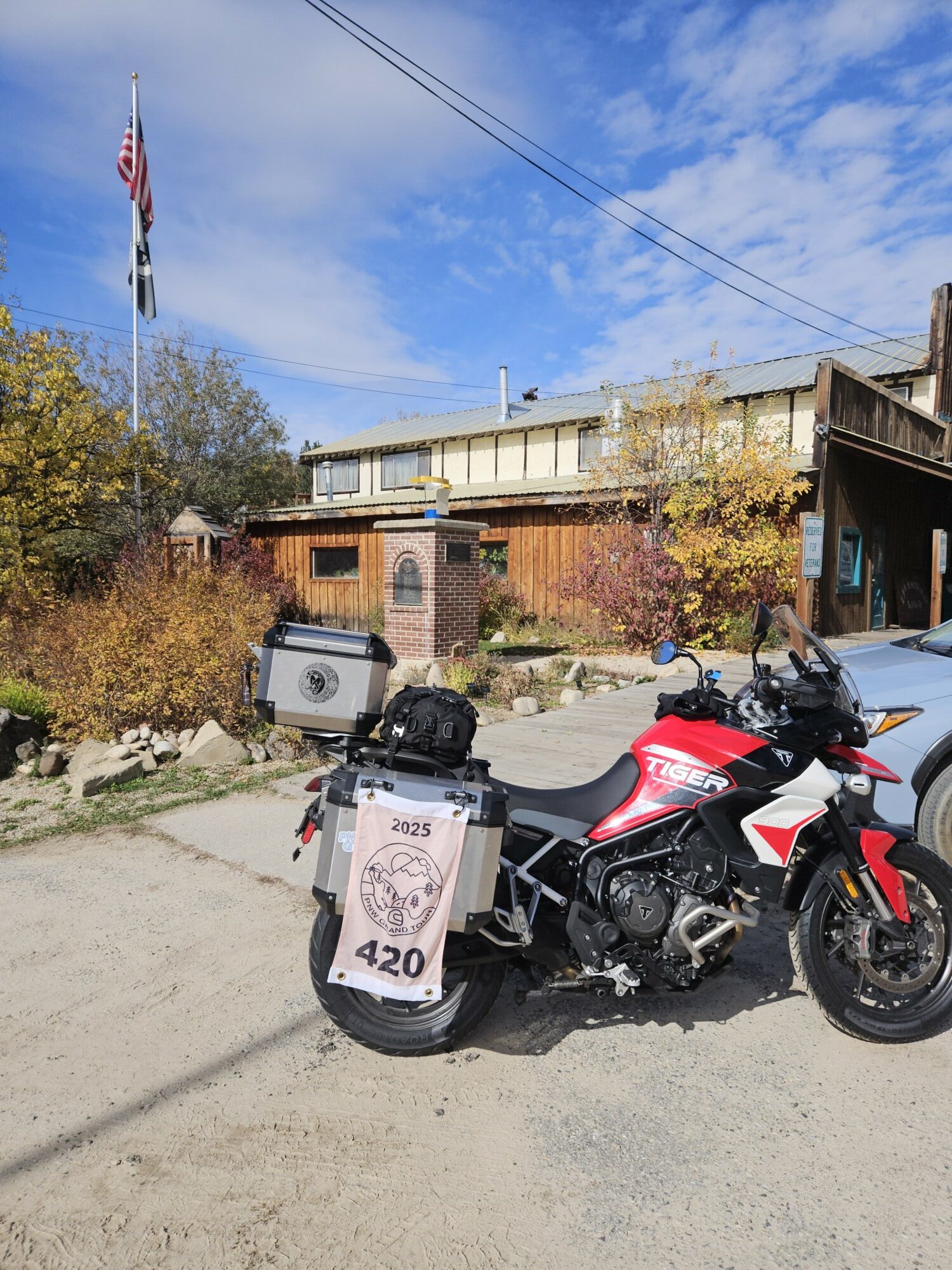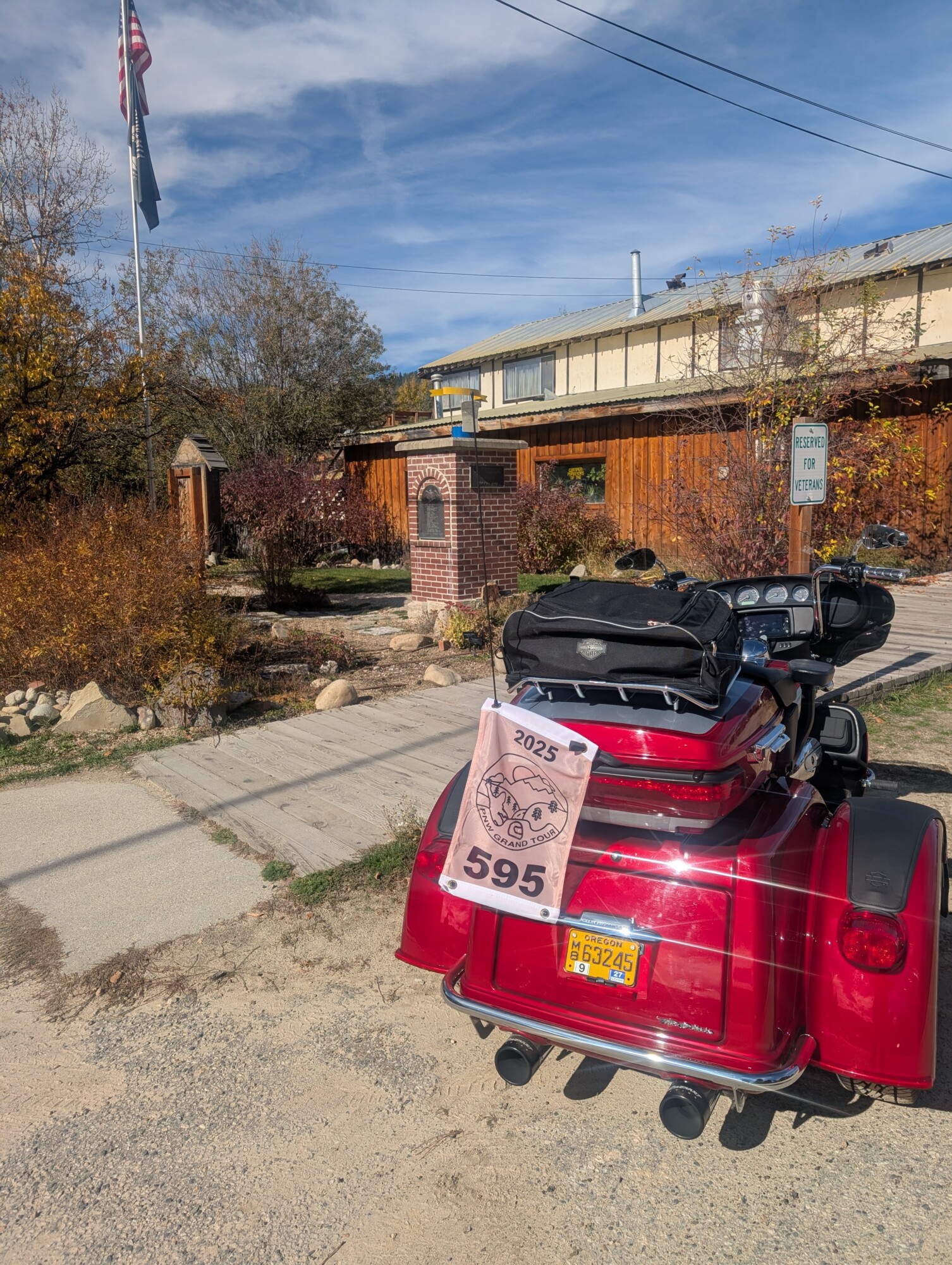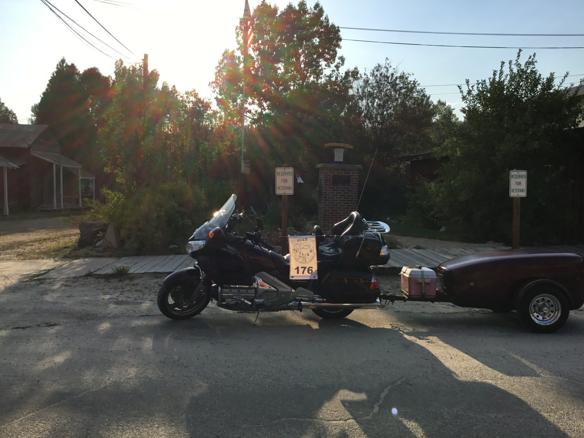 Take a picture of veterans memorial in Idaho City with your bike and flag in the picture.