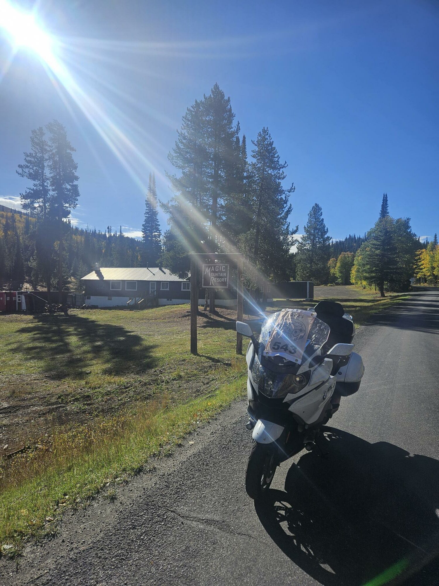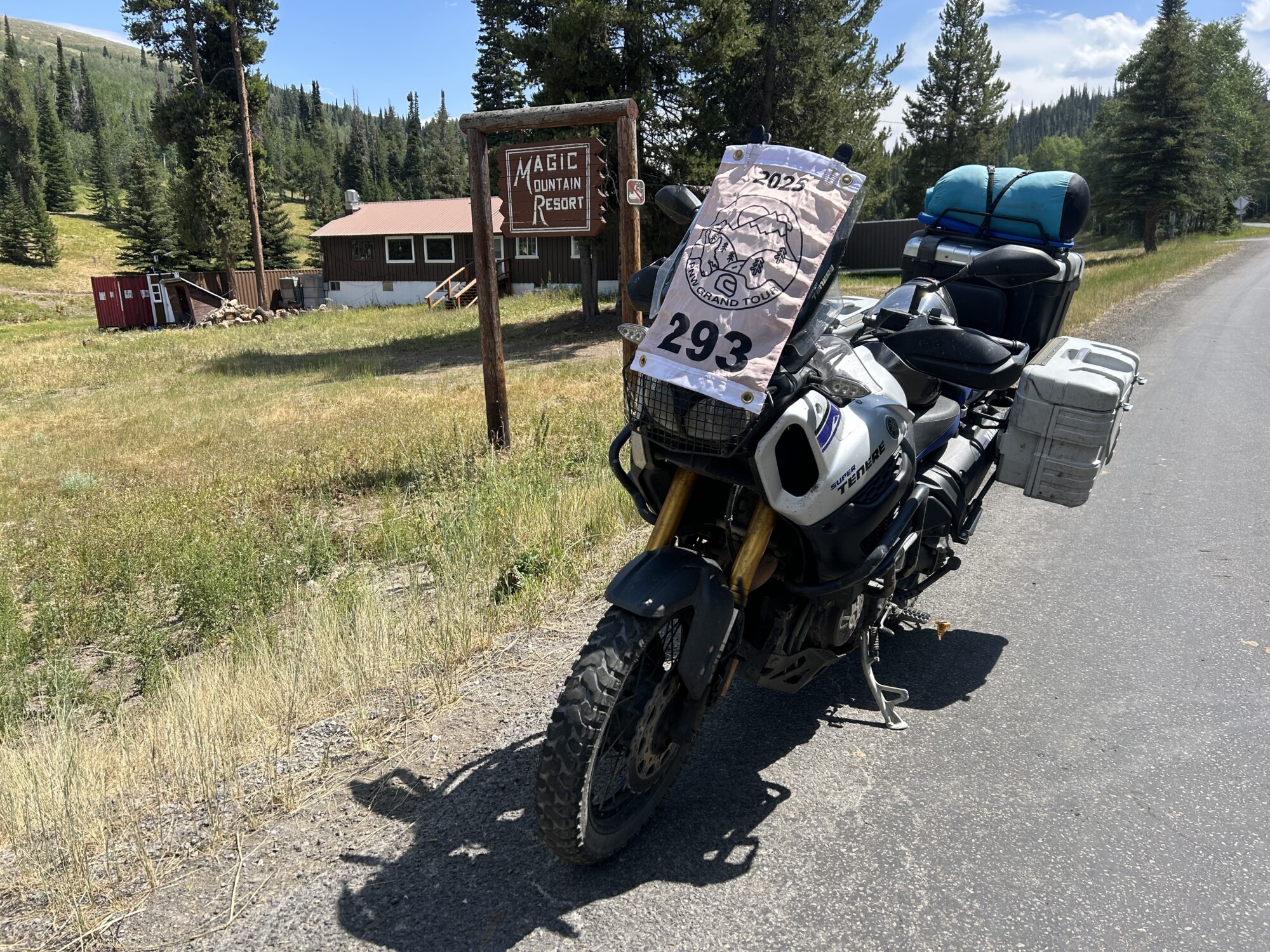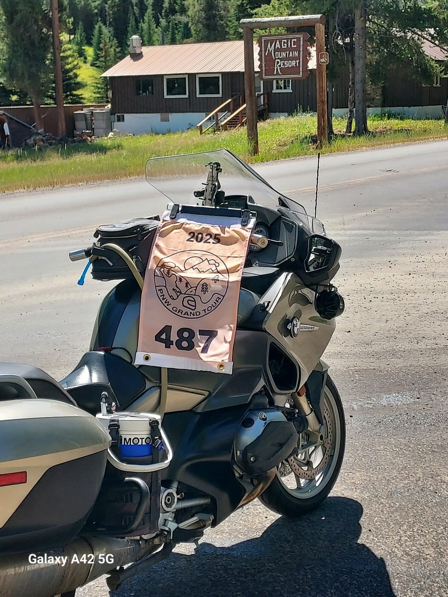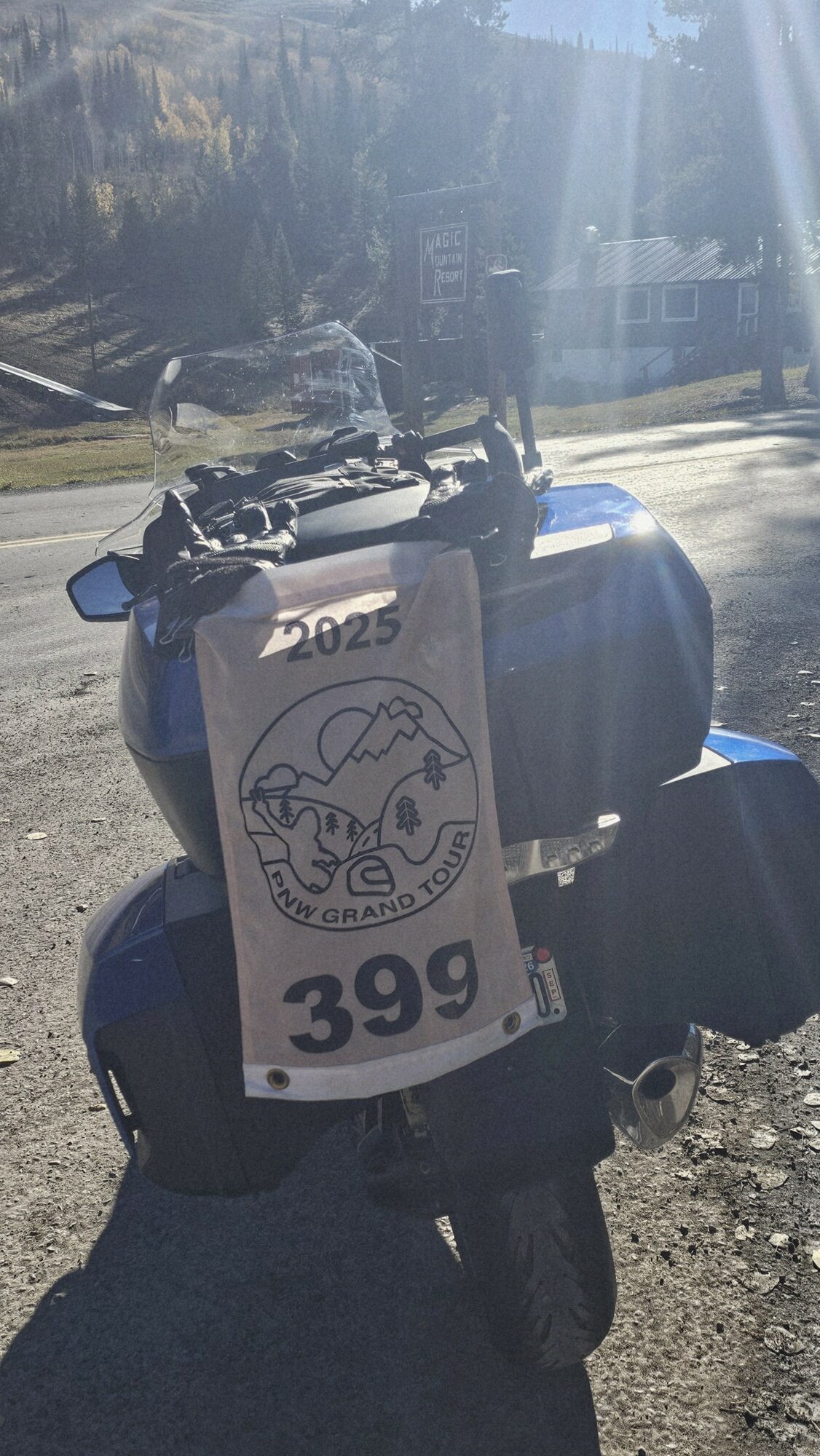 Take a picture of the Magic Mountain Resort sign with your bike and flag in the picture.