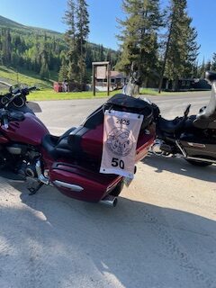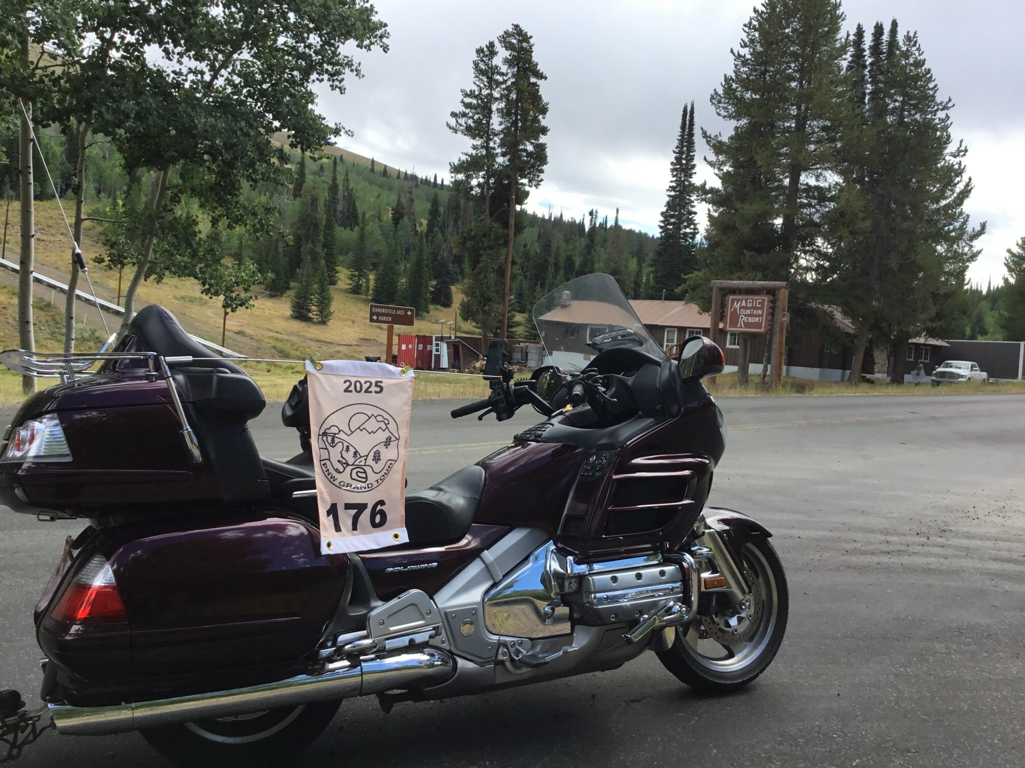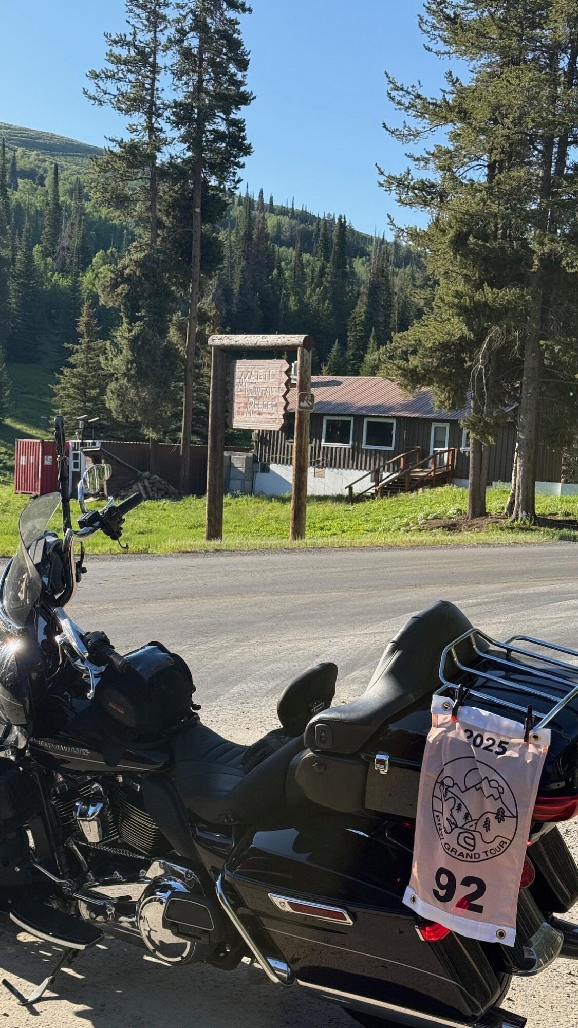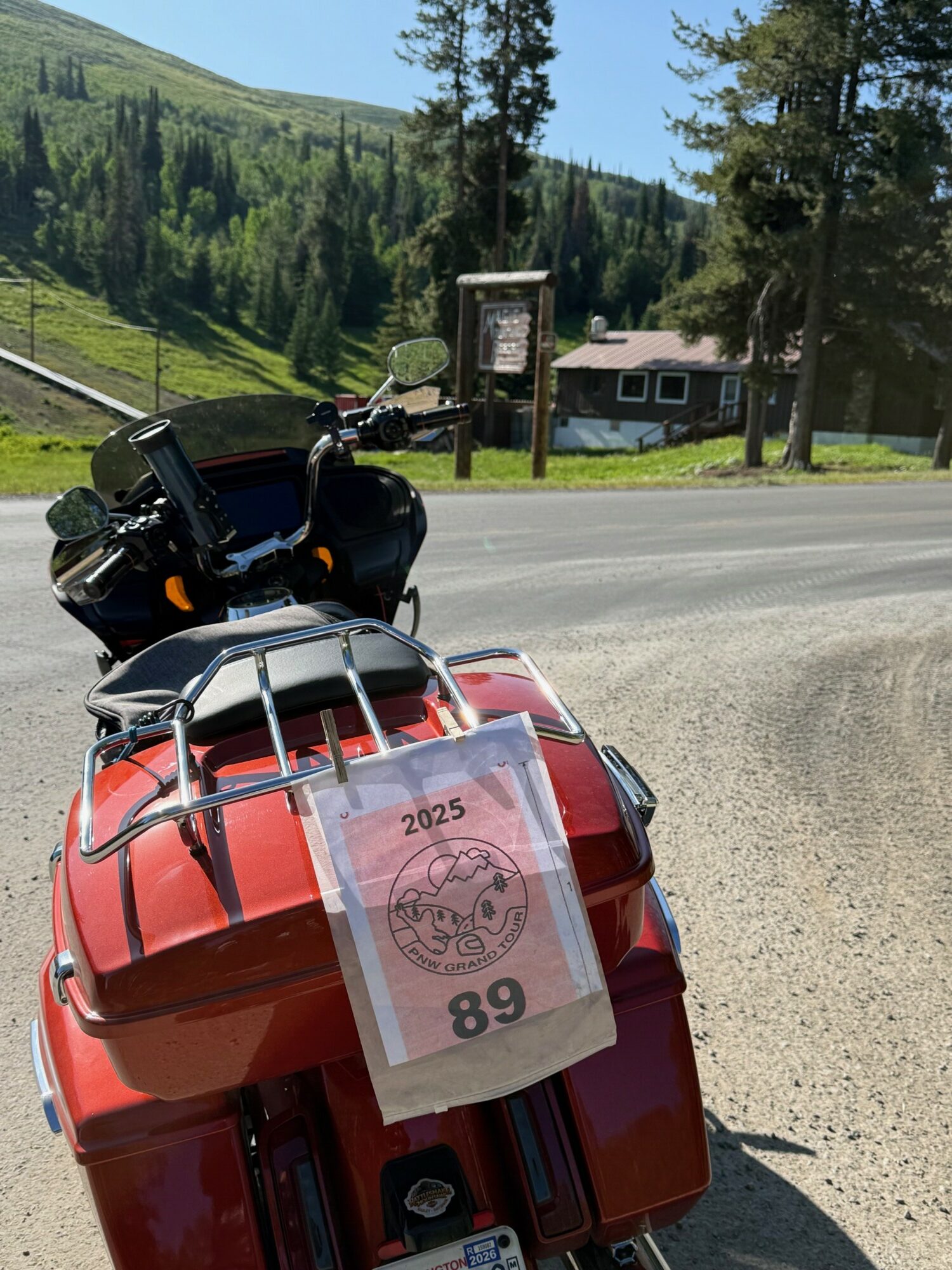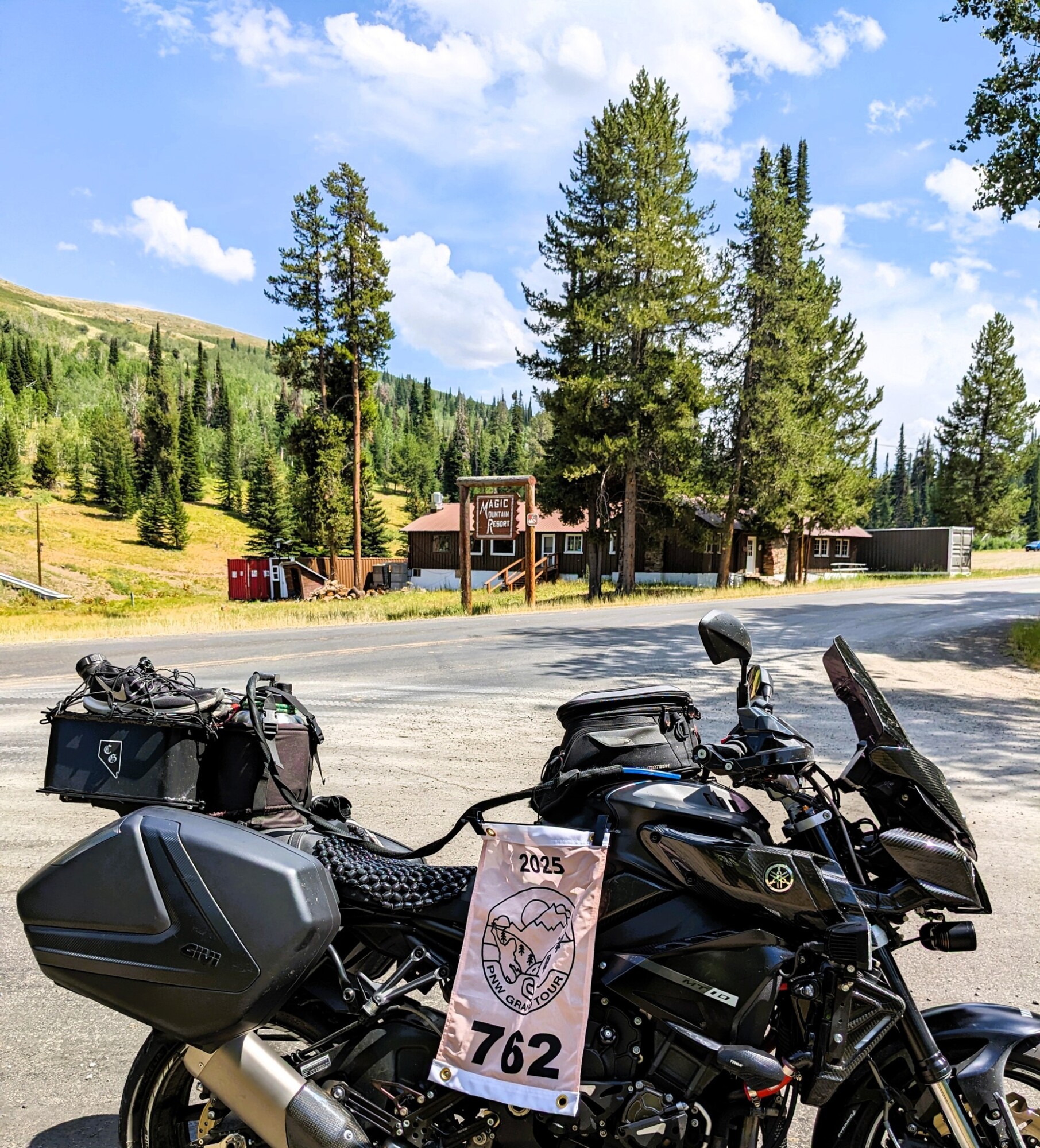 Take a picture of the Magic Mountain Resort sign with your bike and flag in the picture.