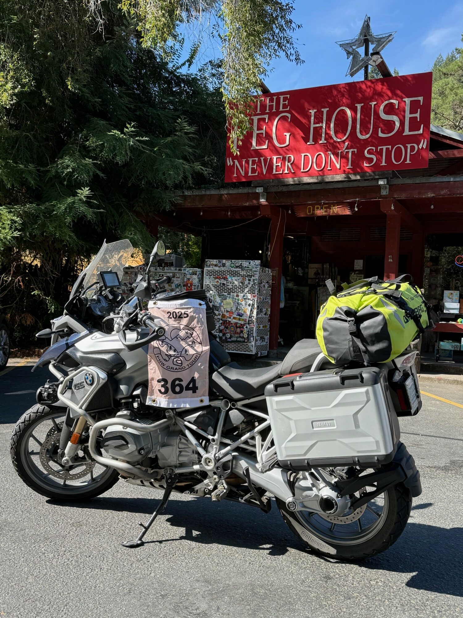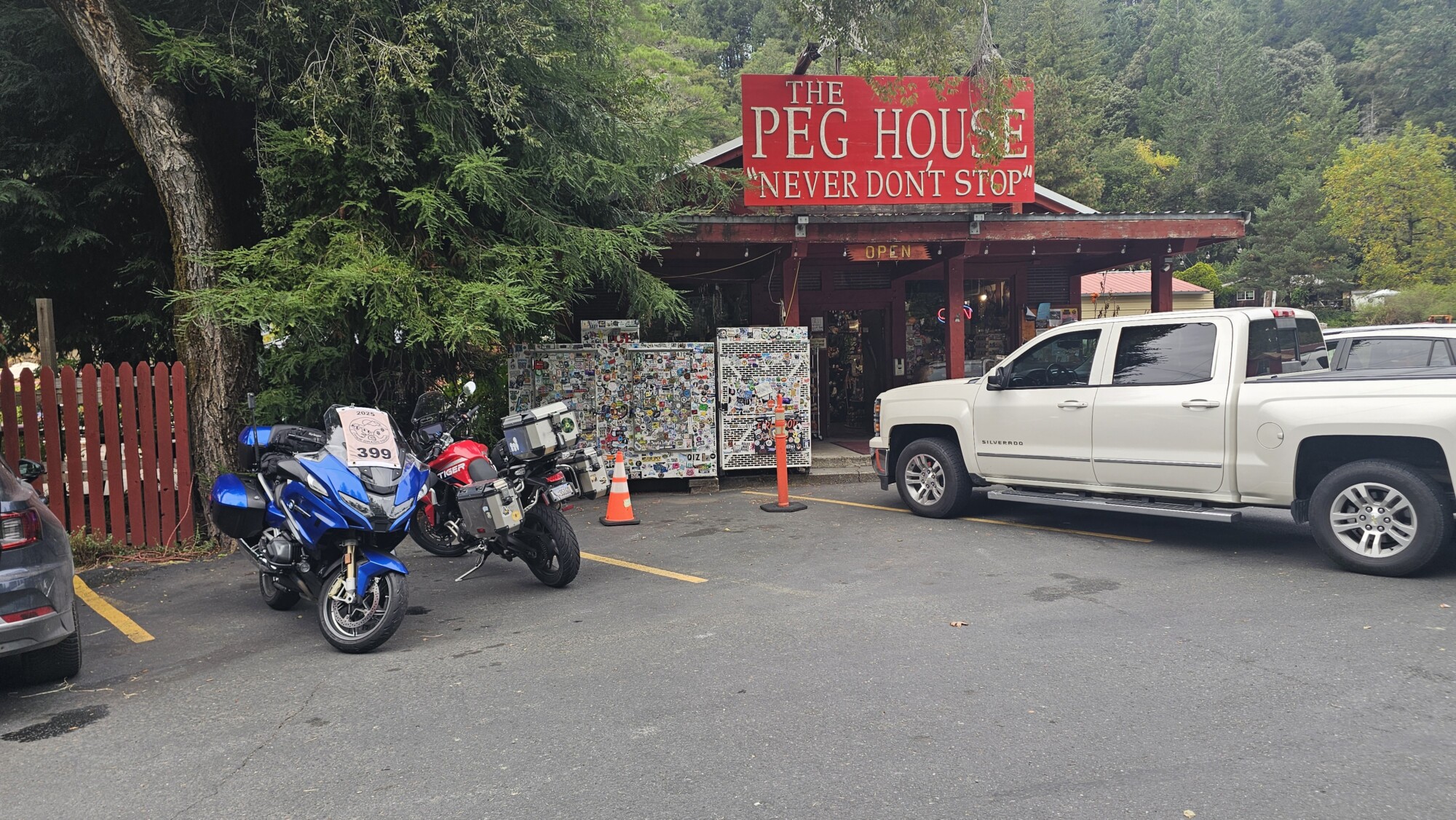 Take a picture of the Peg House sign with your bike and flag in the picture.