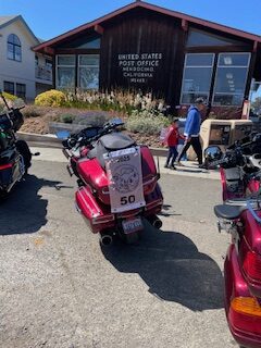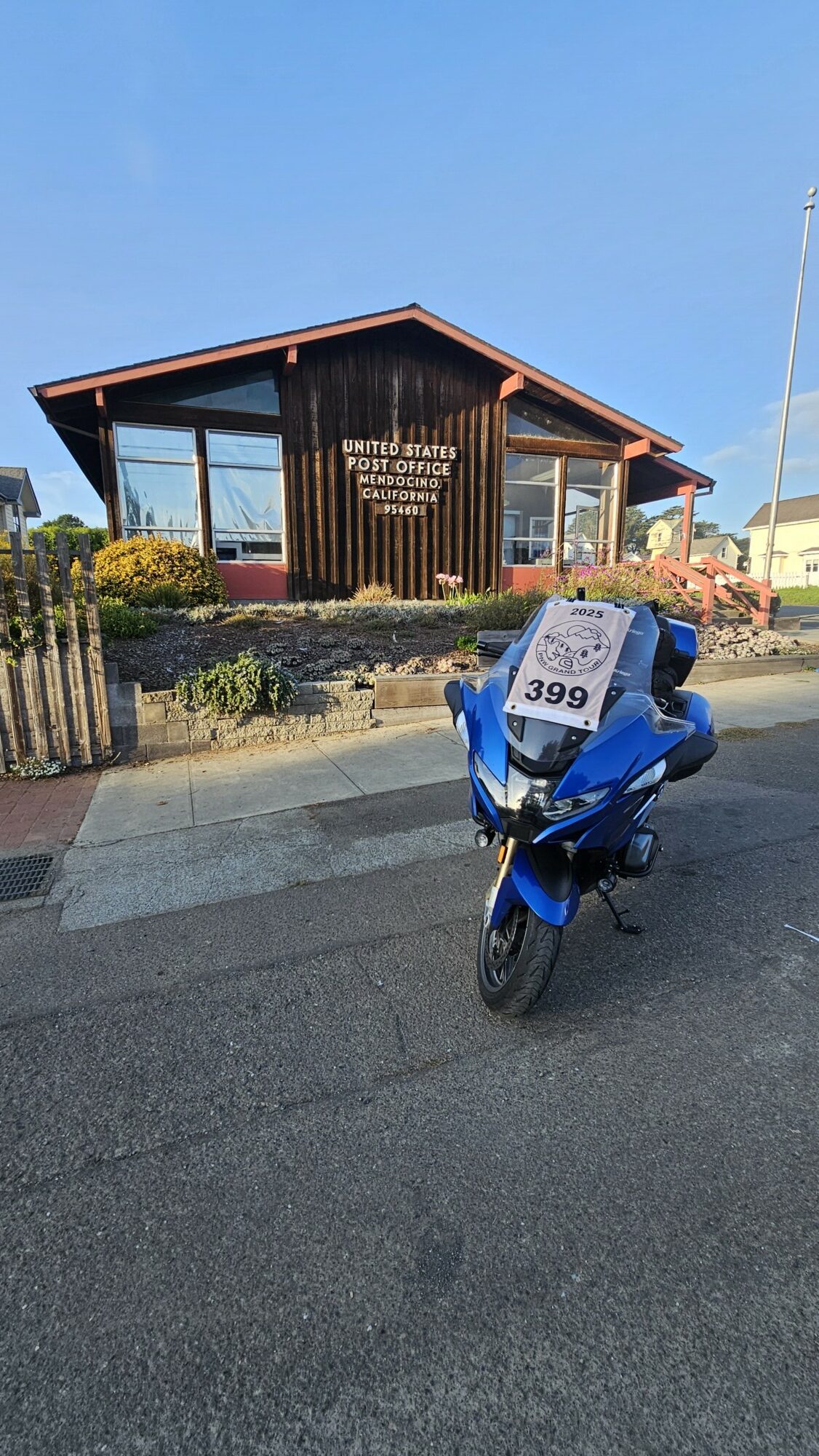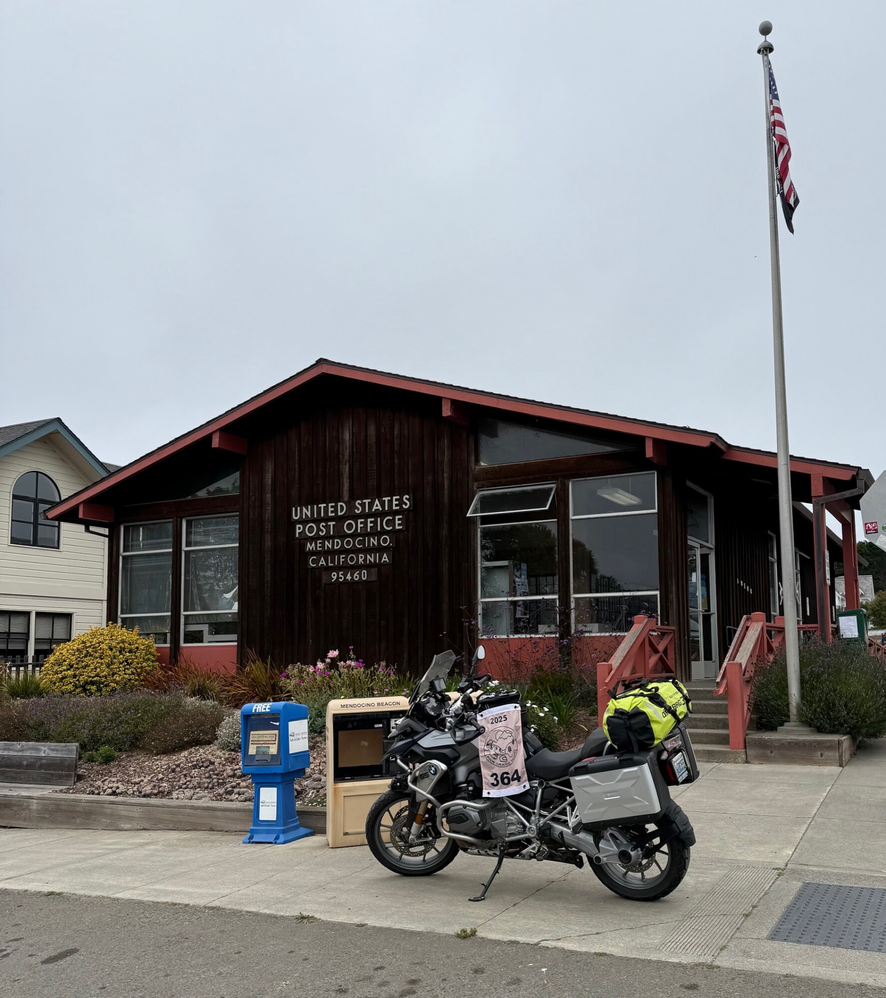 Take a picture of the post office in Mendocino with your bike and flag in the picture.