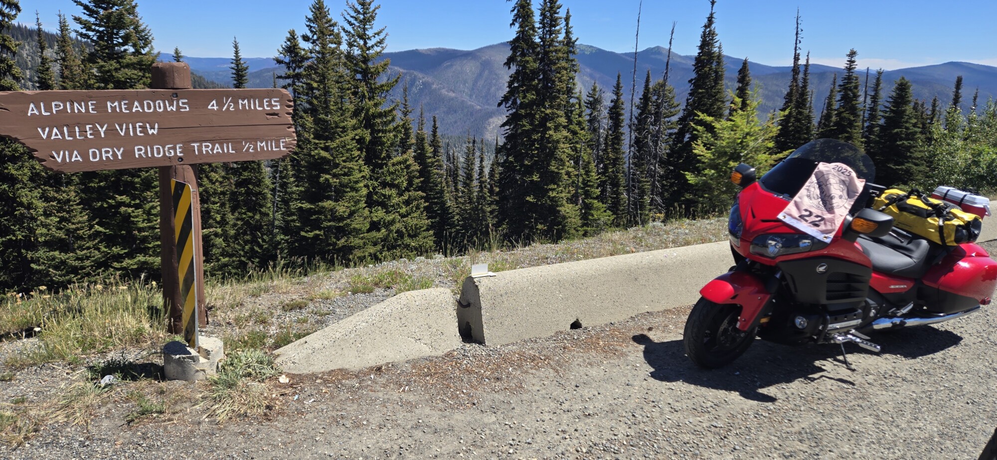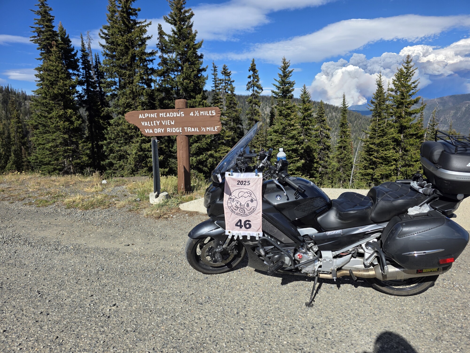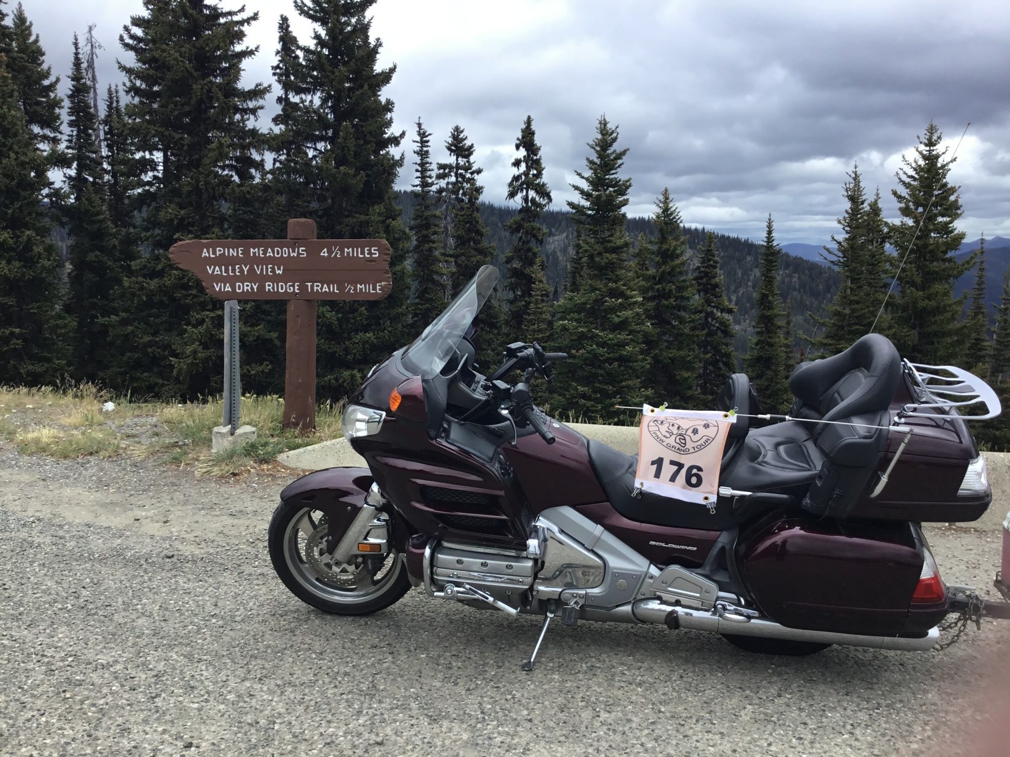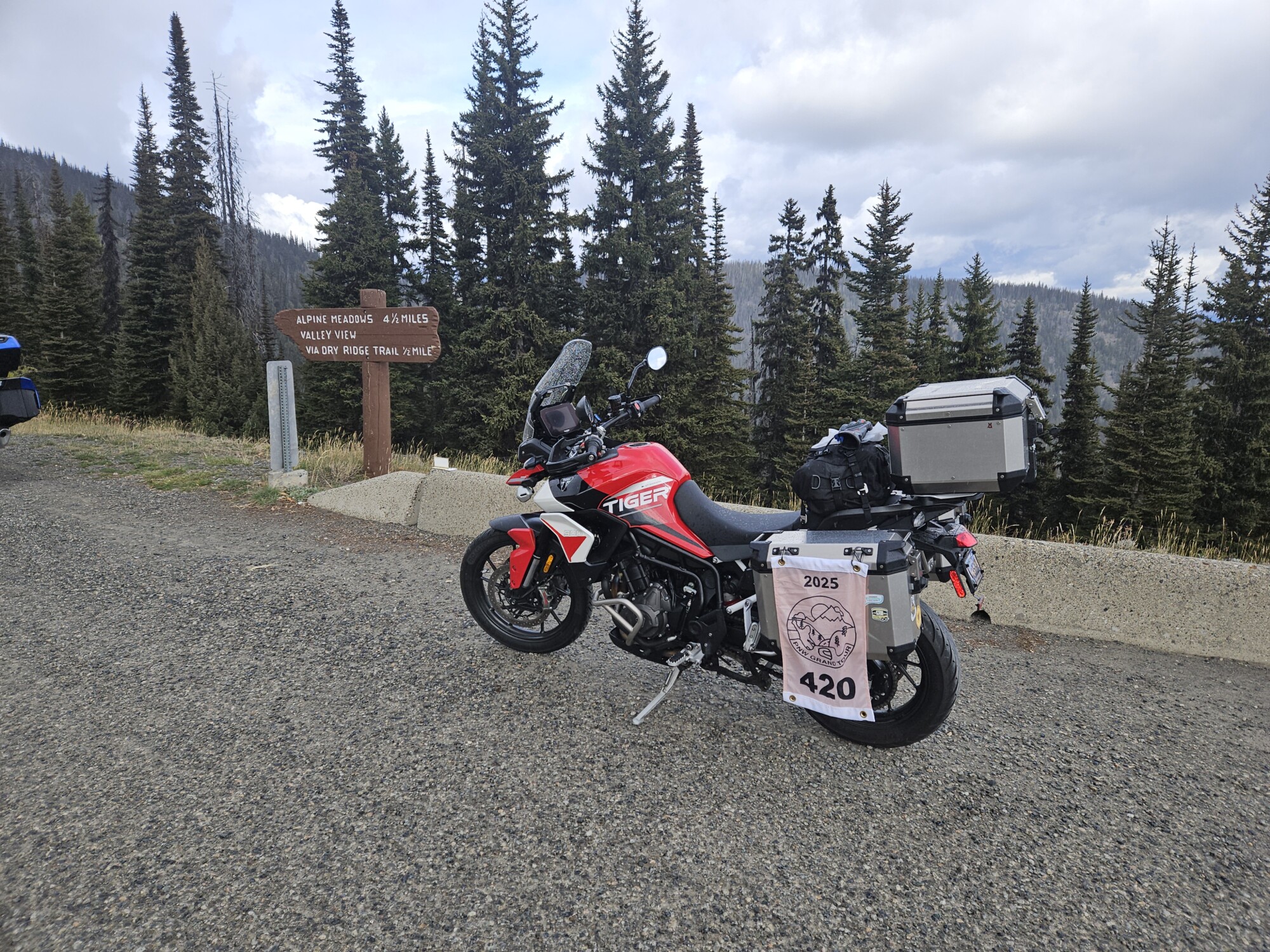 Take a picture of the Alpine Meadows sign with your bike and flag in the picture.