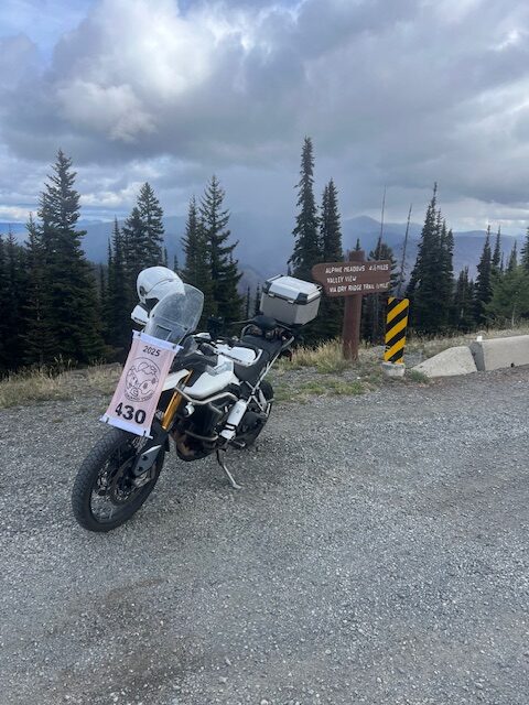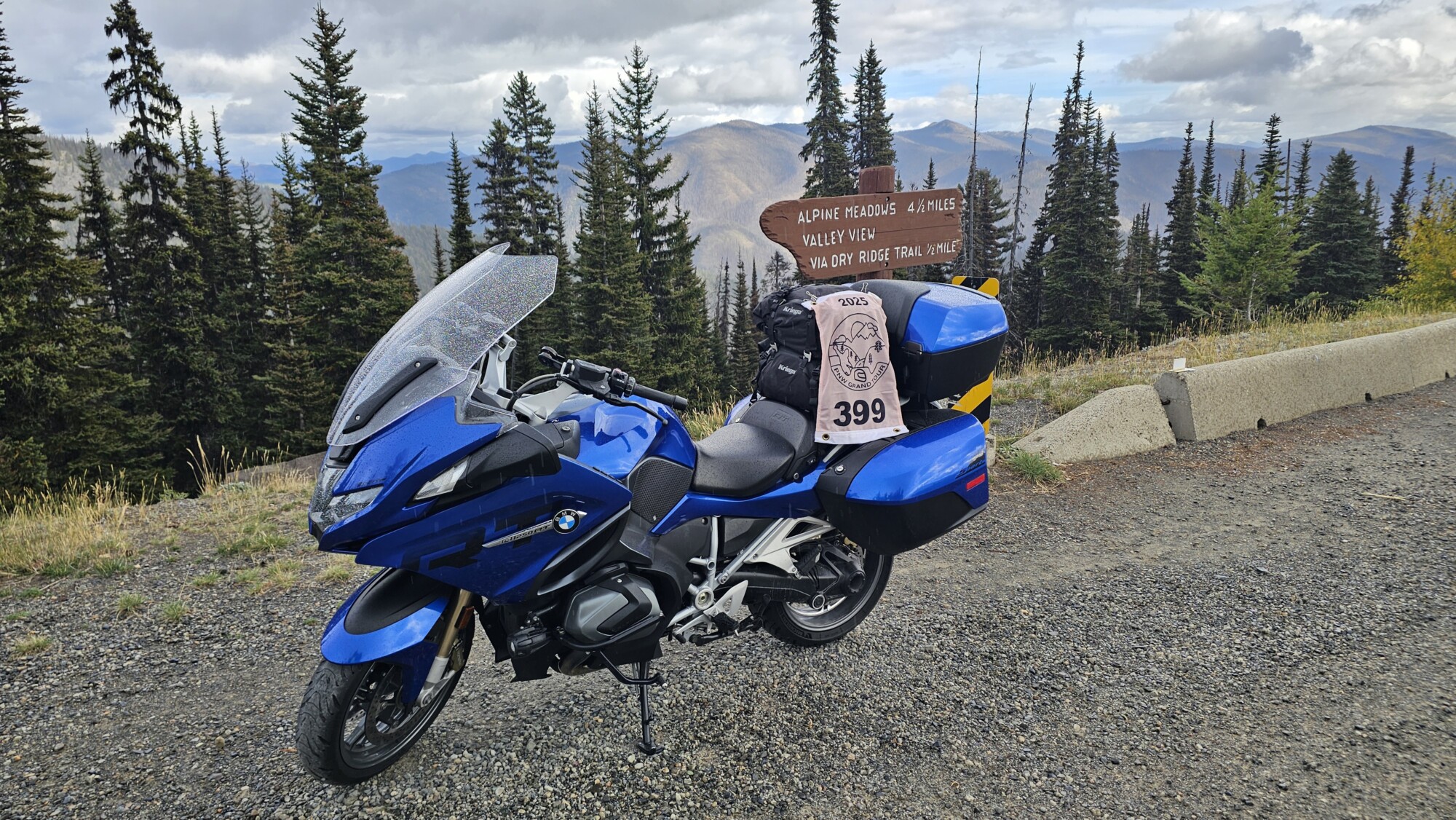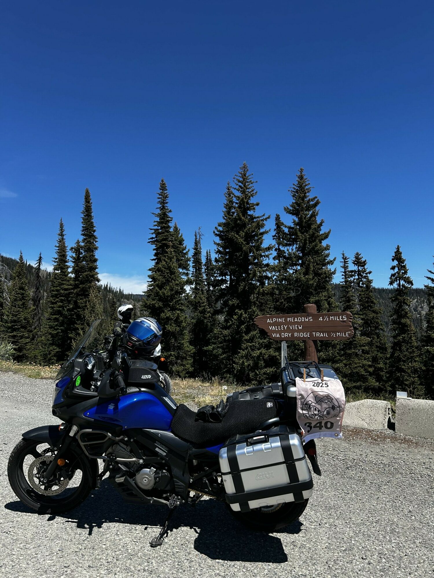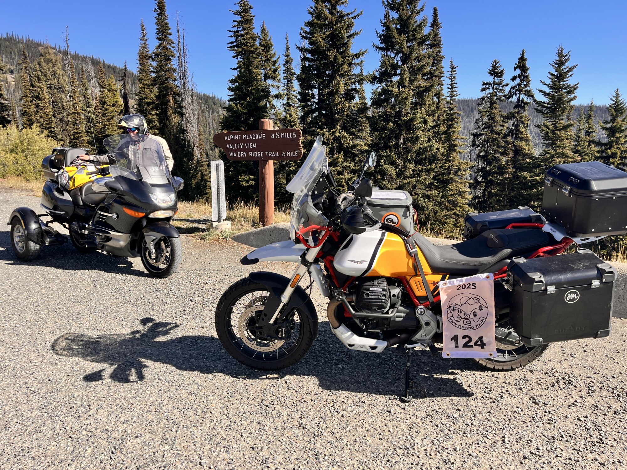 Take a picture of the Alpine Meadows sign with your bike and flag in the picture.
